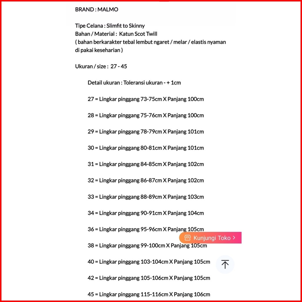 Malmo Big Size Celana Chino Panjang Pria Jumbo Original Premium 34-45 Model Slim Fit Stretch