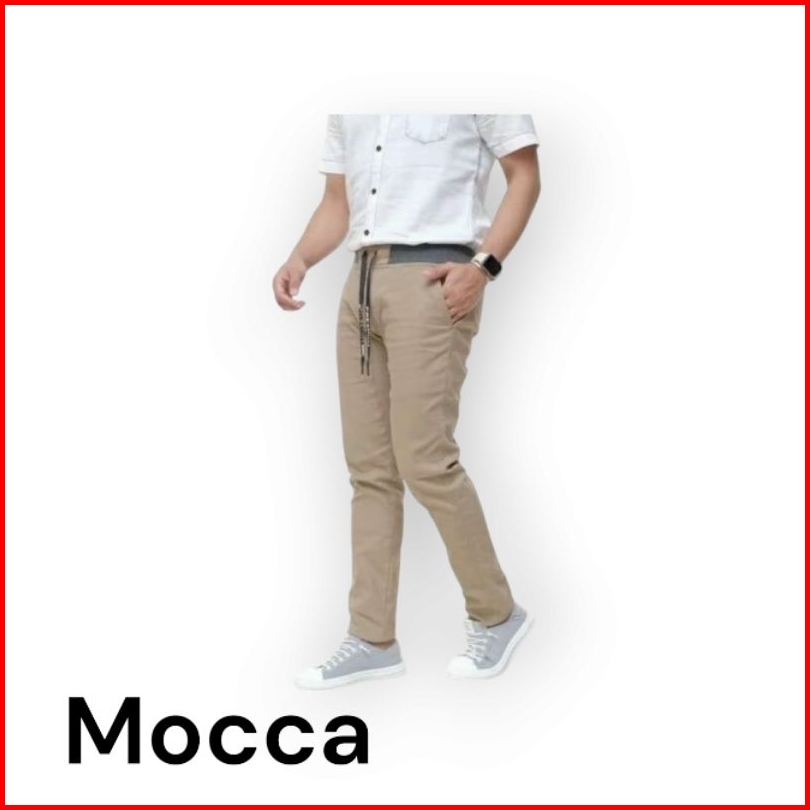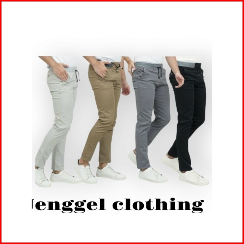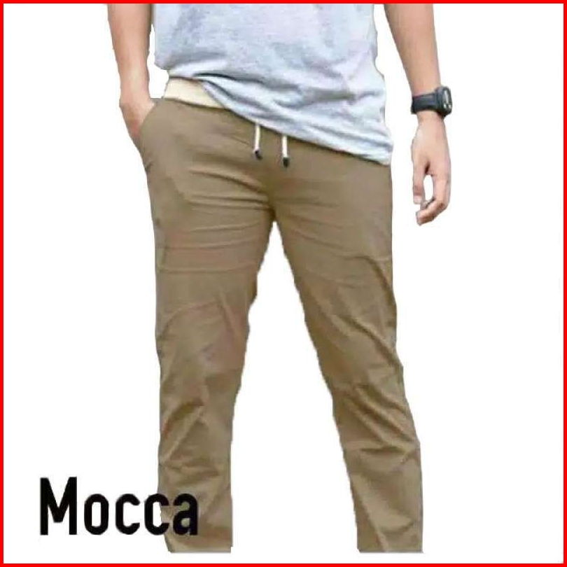 Celana Chinos Chino Panjang Karet Pinggang Rip Celana Chino Pria Panjang Rip
