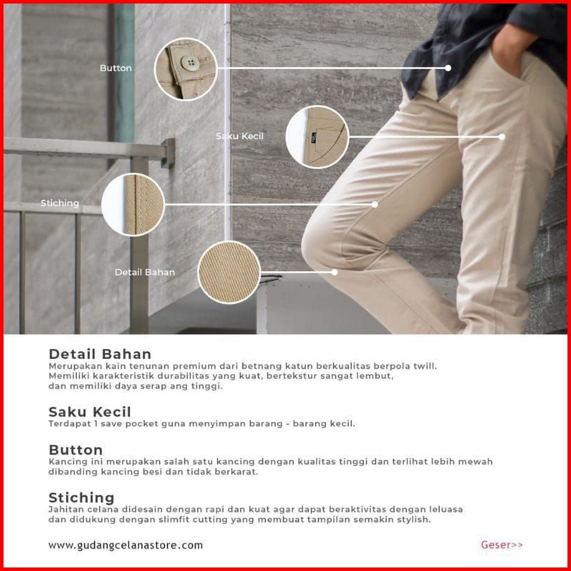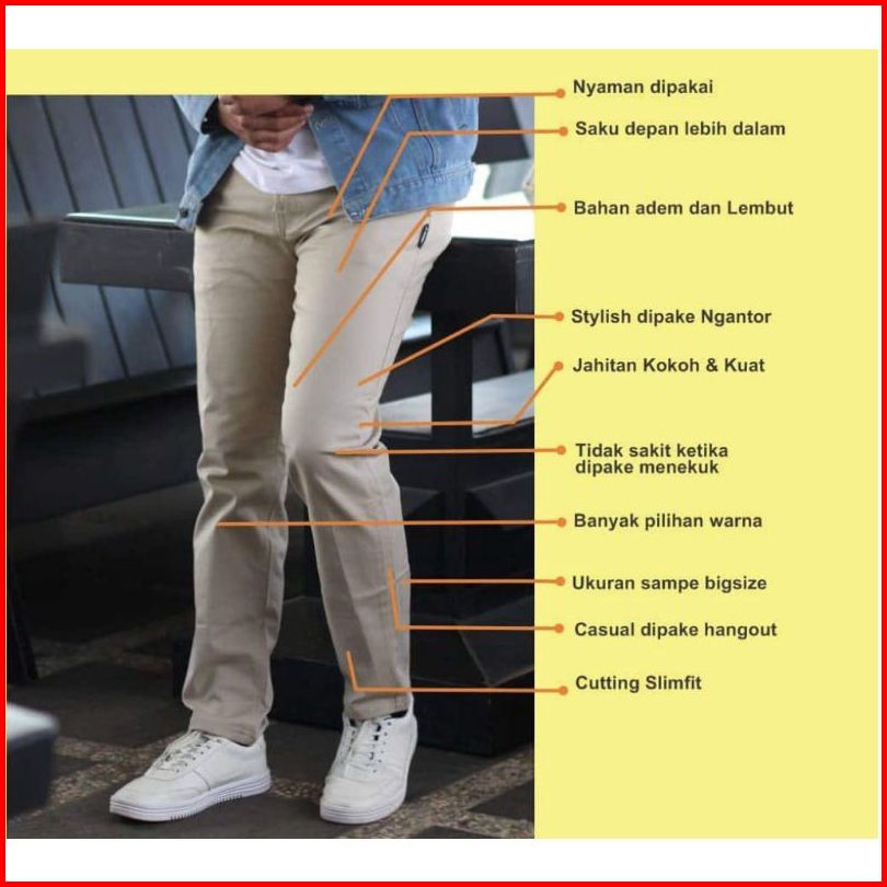 Terlaris Celana Pria Chino Slim Fit Panjang Kerja Kantor Santai Liburan Cowok Gentleman 27 - 38