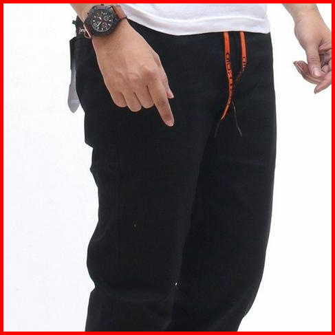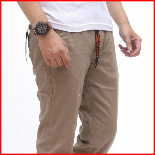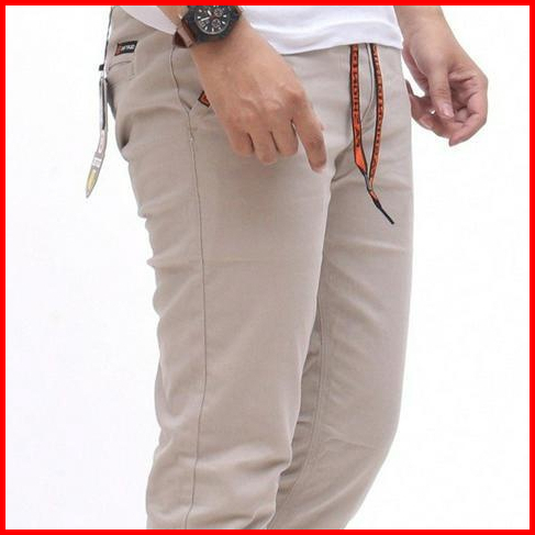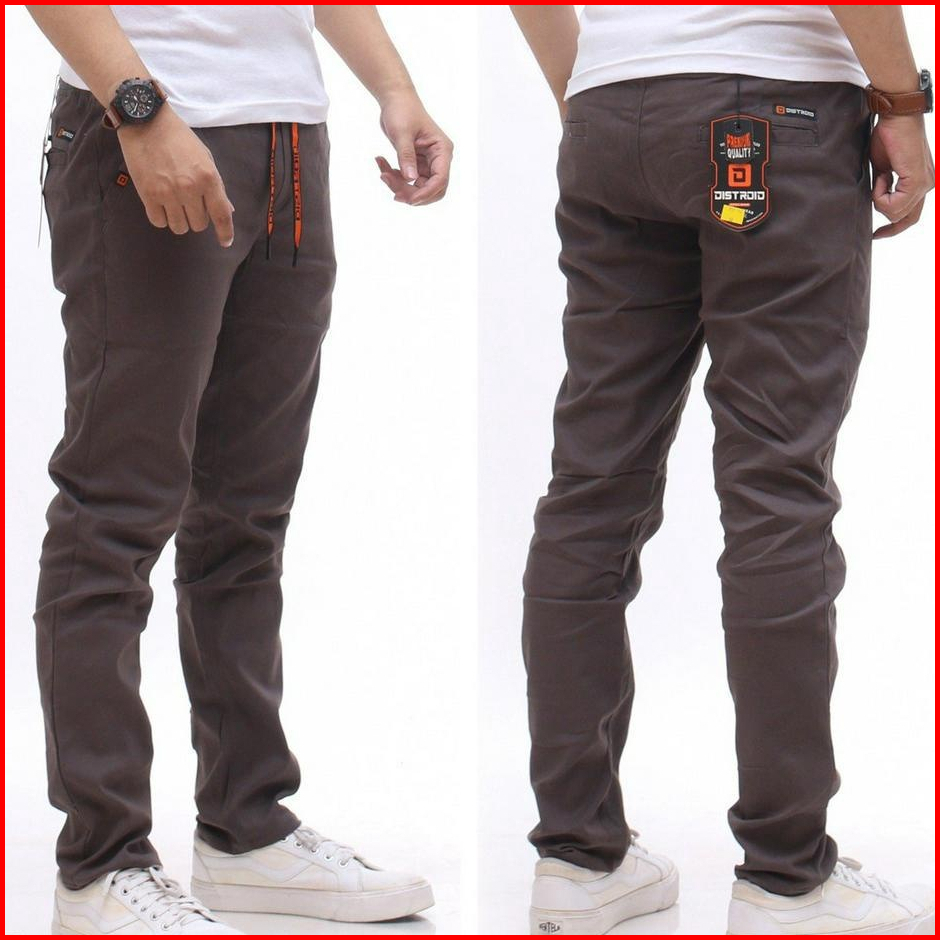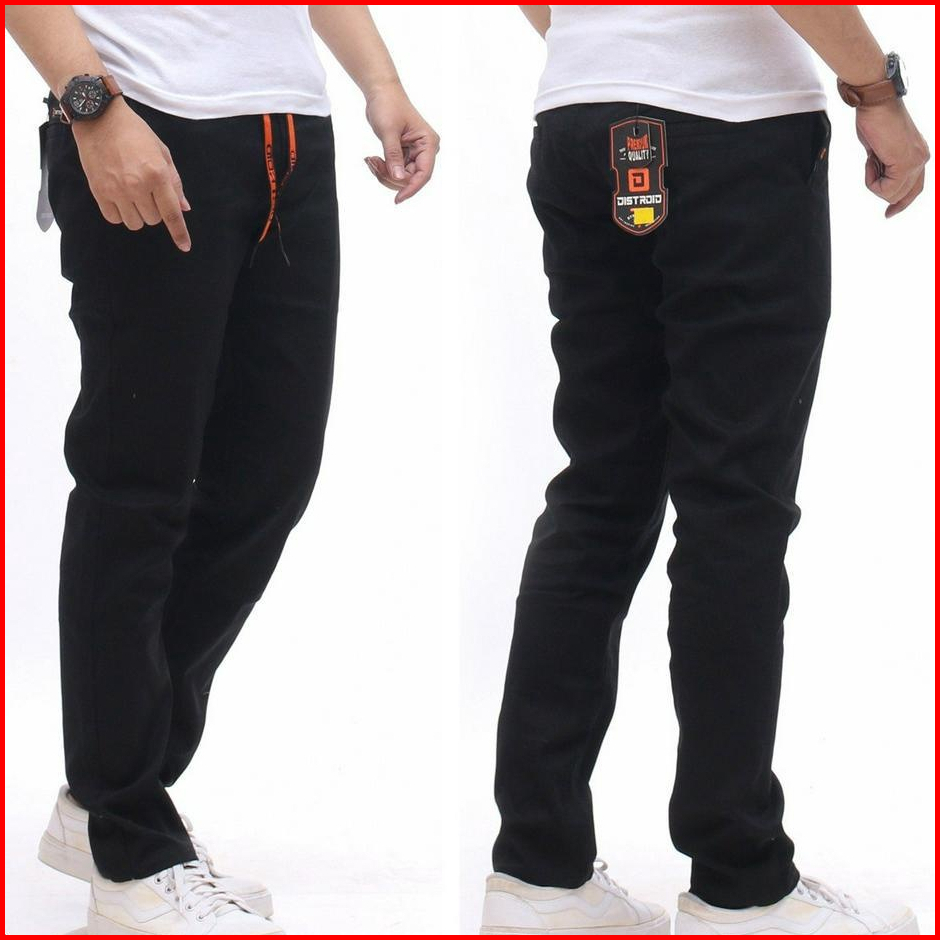 Celana Chino Panjang Pria Cino Rib Pinggang Karet Distro Premium Hitam Size 28-38
