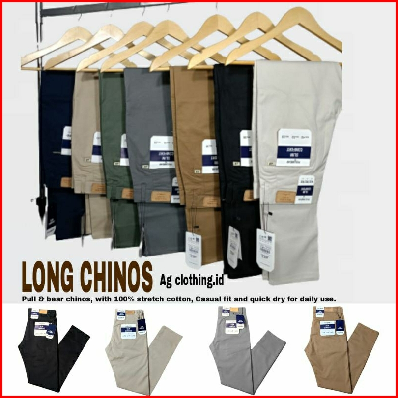 Pull Bear Celana Chino Panjang Pria Dewasa Slim Fit Premium Import Original Chinos Casual Formal