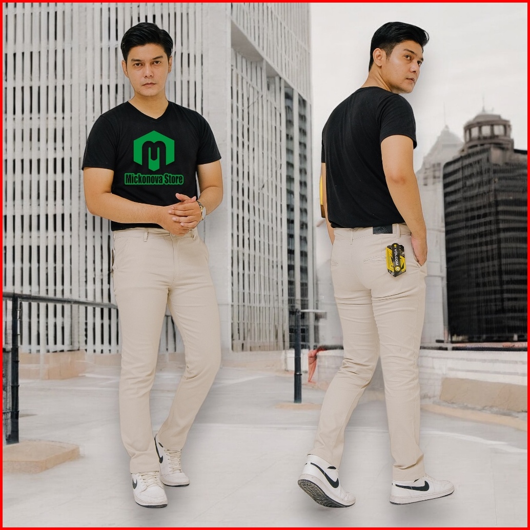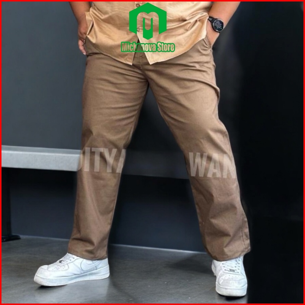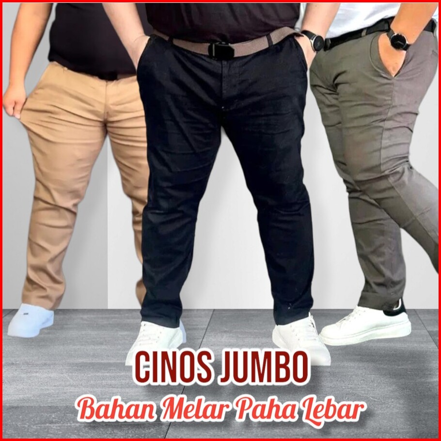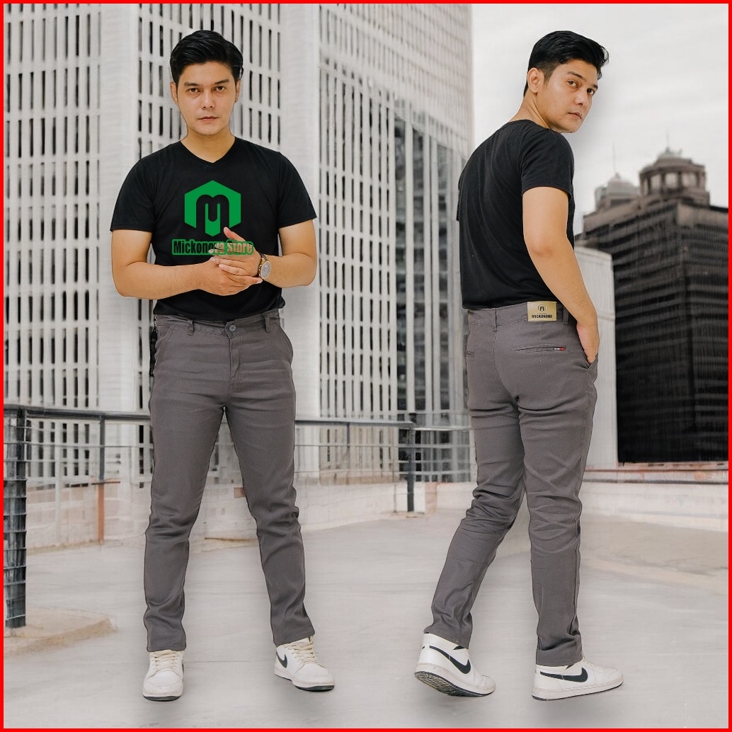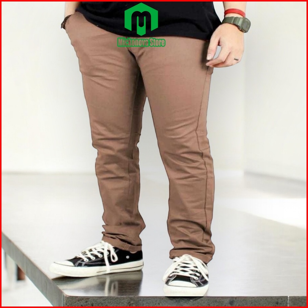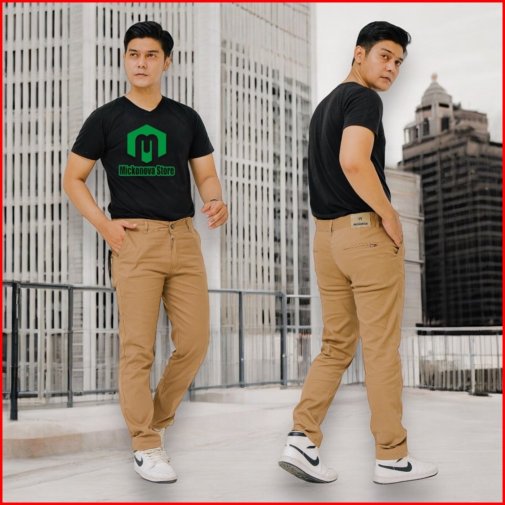 Mickonova Celana Chino Panjang Pria Jumbo Cinos Slim Fit Bahan Melar Stretch Big Size
