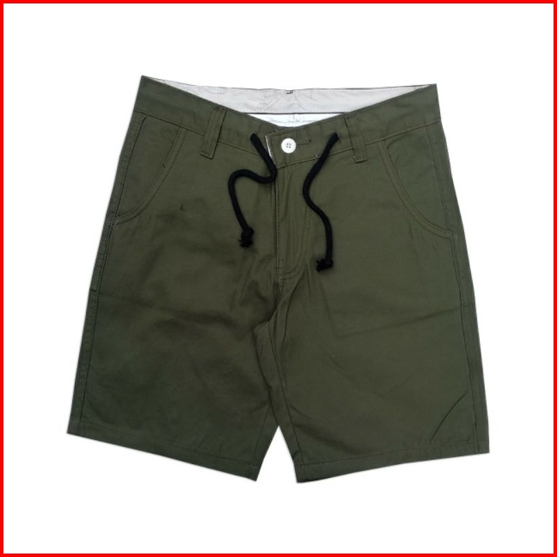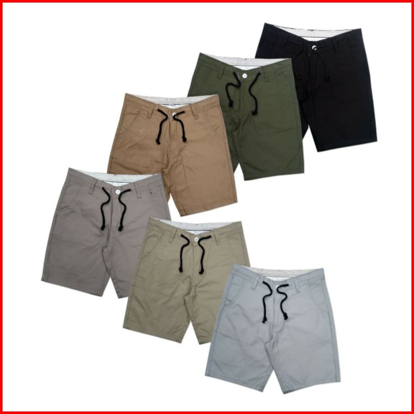 Celana Cinos Pendek Pria Celana Pendek Cino Pinggang Tali Celana Chino Twill Premium Warna Hitam Krem Army Ukuran 28 29