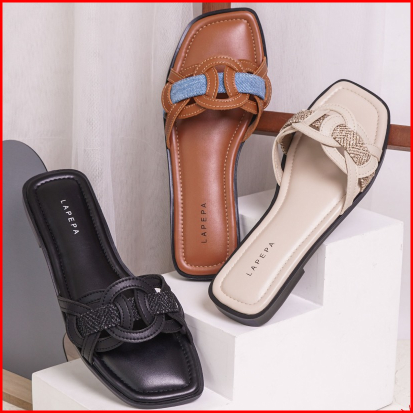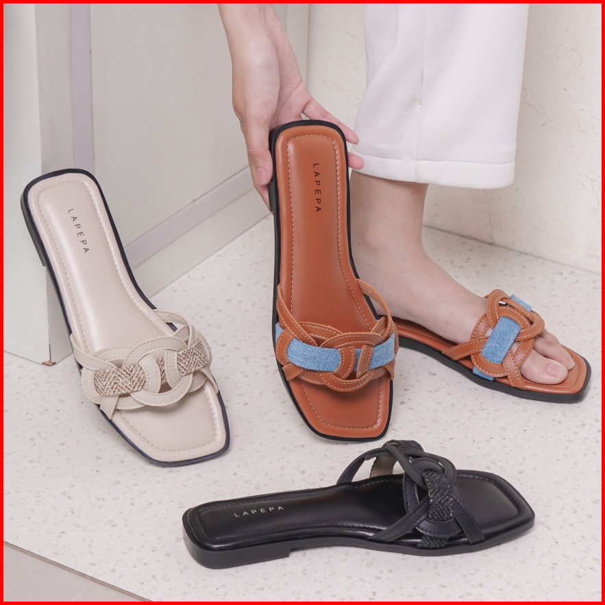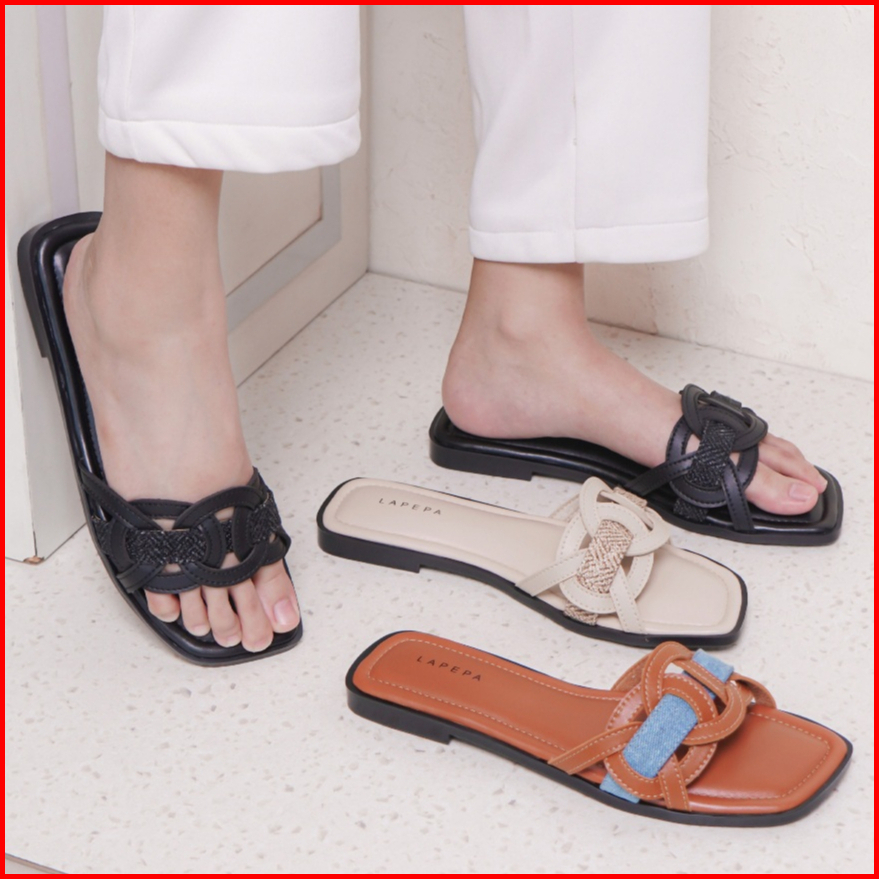Lapepa Yuk - Renata Sandal Wanita Teplek Korea Casual Size 36 - 40 Sendal Slop Empuk Flat Cewek Kasual Rumahan Warna Hit