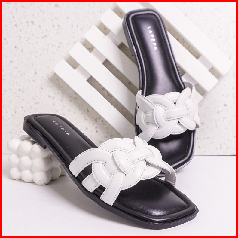Lapepa Yuk - Anna Sandal Wanita Teplek Korea Casual Size 36 - 40 Sendal Slop Empuk Flat Cewek Kasual Rumahan Warna Putih