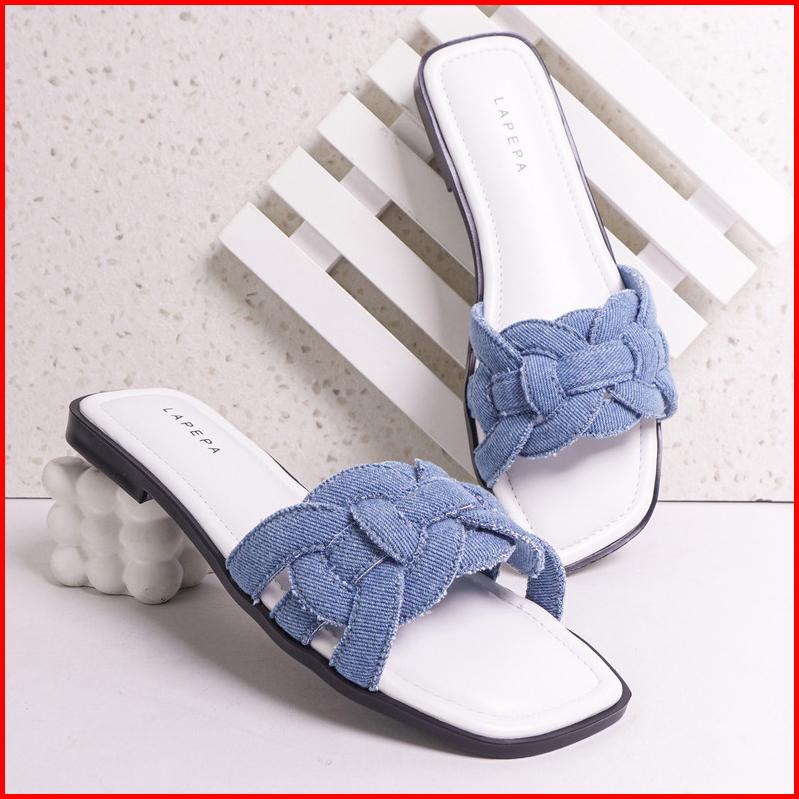 Lapepa Yuk - Anna Sandal Wanita Teplek Korea Casual Size 36 - 40 Sendal Slop Empuk Flat Cewek Kasual Rumahan Warna Denim