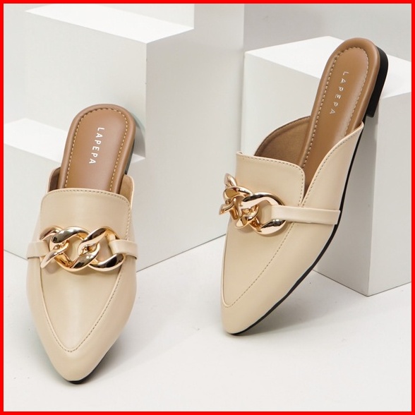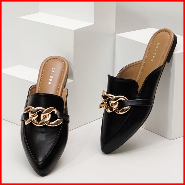 Lapepa Yuk - Amora Sepatu Sandal Wanita Slip On Mules Size 36 - 40 Casual Sendal Slop Teplek Flat Ujung Lancip Tertutup