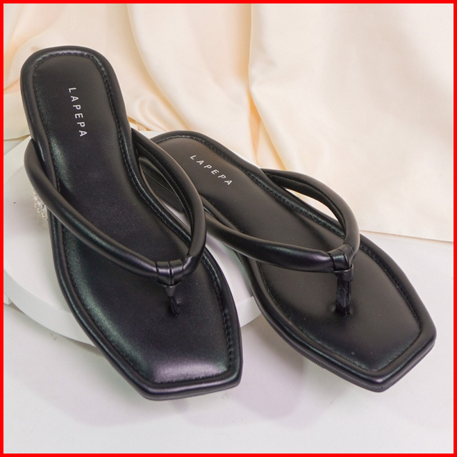 Lapepa Yuk - Livia Sandal Wanita Jepit Flat Size 36 - 40 Sendal Teplek Flat Cewek Pergi Jalan Rumahan Belleza Warna Hita