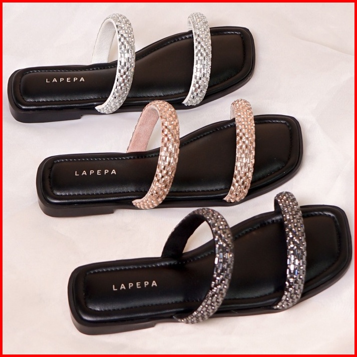 Lapepa Yuk - Jasmine Sandal Wanita Teplek Mewah Blink Kristal Size 36 - 40 Sendal Slop Rumah Flat Cewek Pergi Jalan Blin
