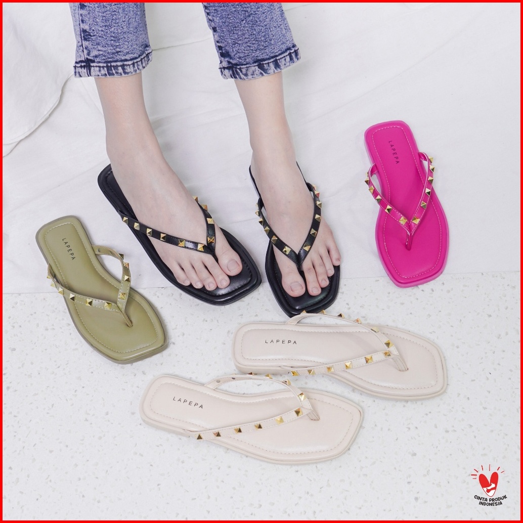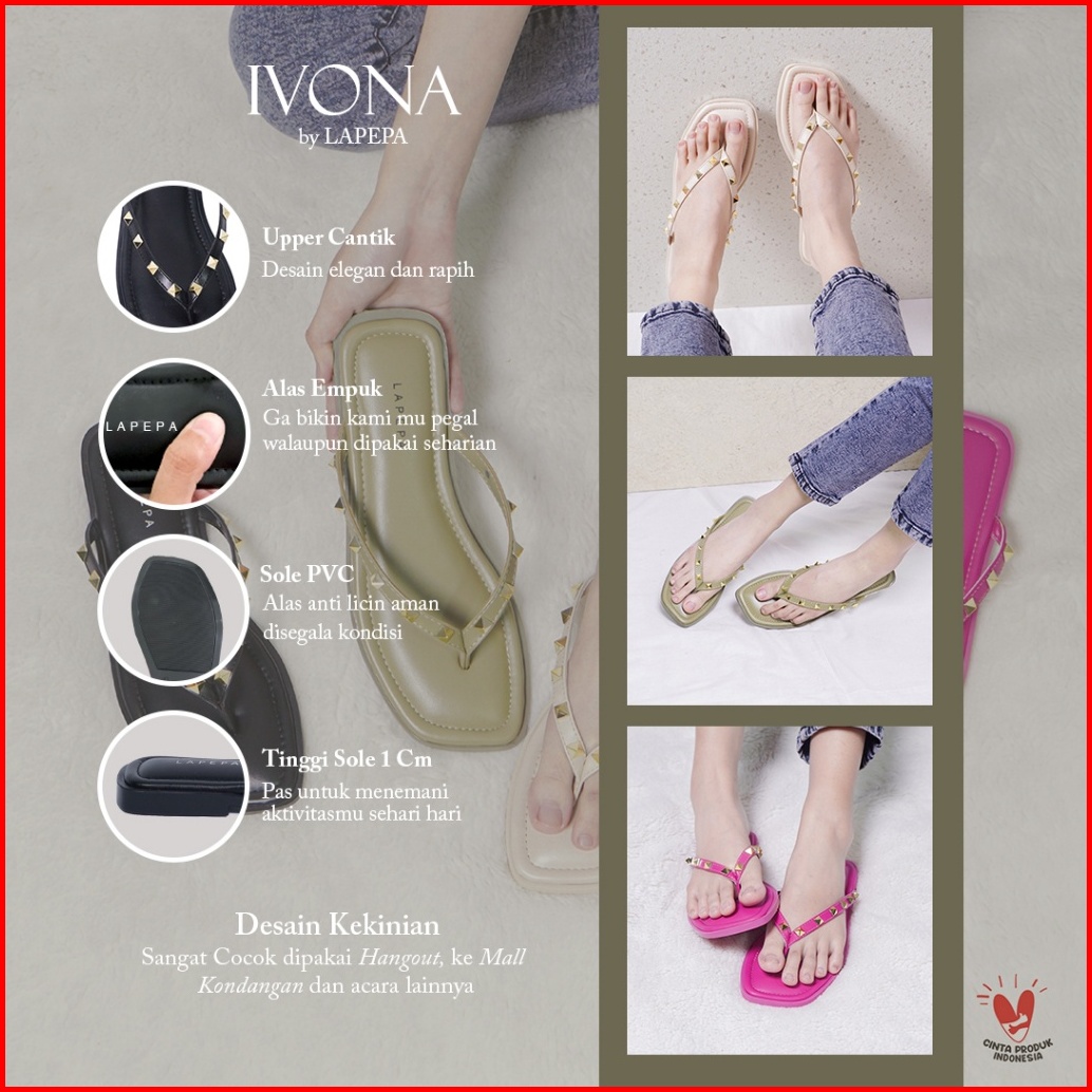 Lapepa Yuk - Ivona Sandal Wanita Teplek Casual Size 36 - 40 Model Duri Sendal Jepit Empuk Flat Cewek Kasual Rumahan Warn