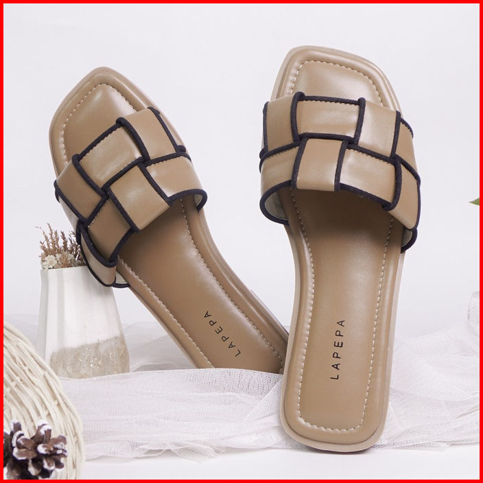 Lapepa Yuk - Nova Sandal Wanita Teplek Korea Casual Size 36 - 40 Sendal Slop Empuk Flat Cewek Kasual Rumahan Warna Cream