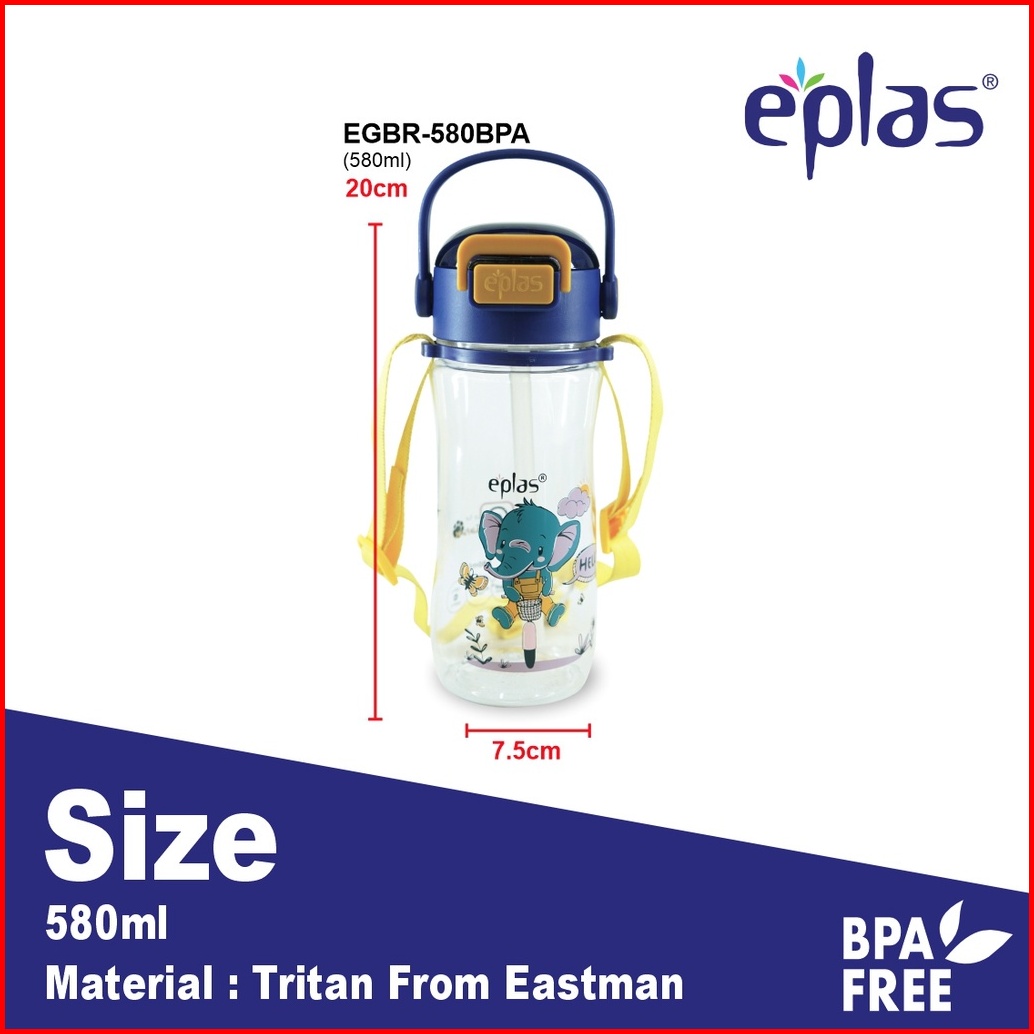 Eplas Kids Botol Minum Anak Tritan Dengan Sedotan Strip Dapat Dilepas Bebas Bpa 580ml Egbr-580