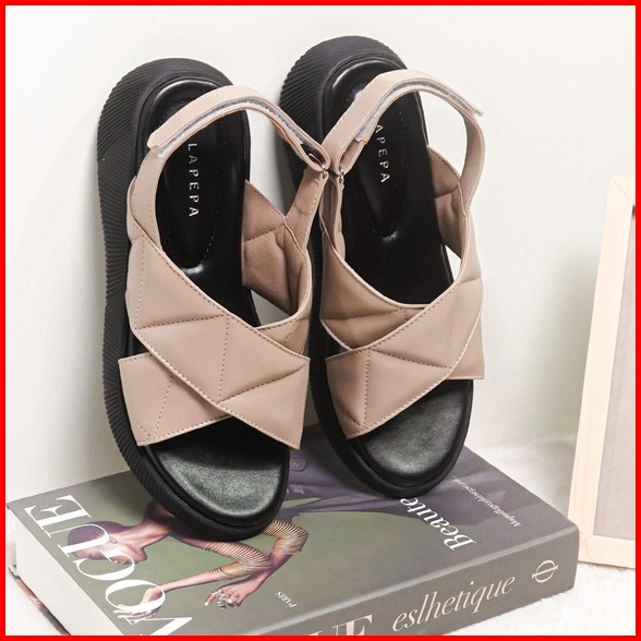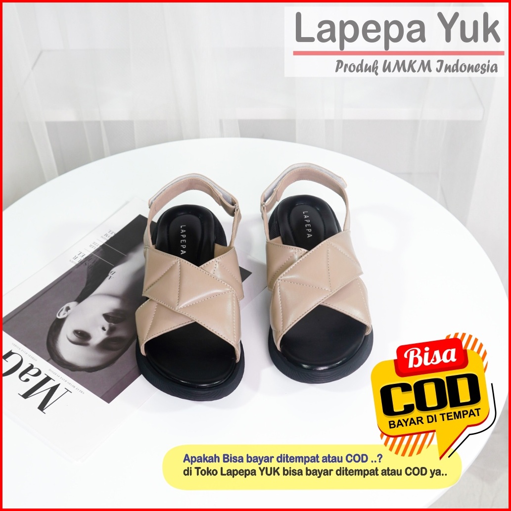 Lapepa Yuk - Sepatu Sandal Wanita Wedges Jovita Model Ban Dua Tali Strap Belakang Hak Tinggi Sole 4 Cm Spatu Sendal Gunu