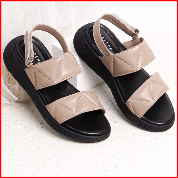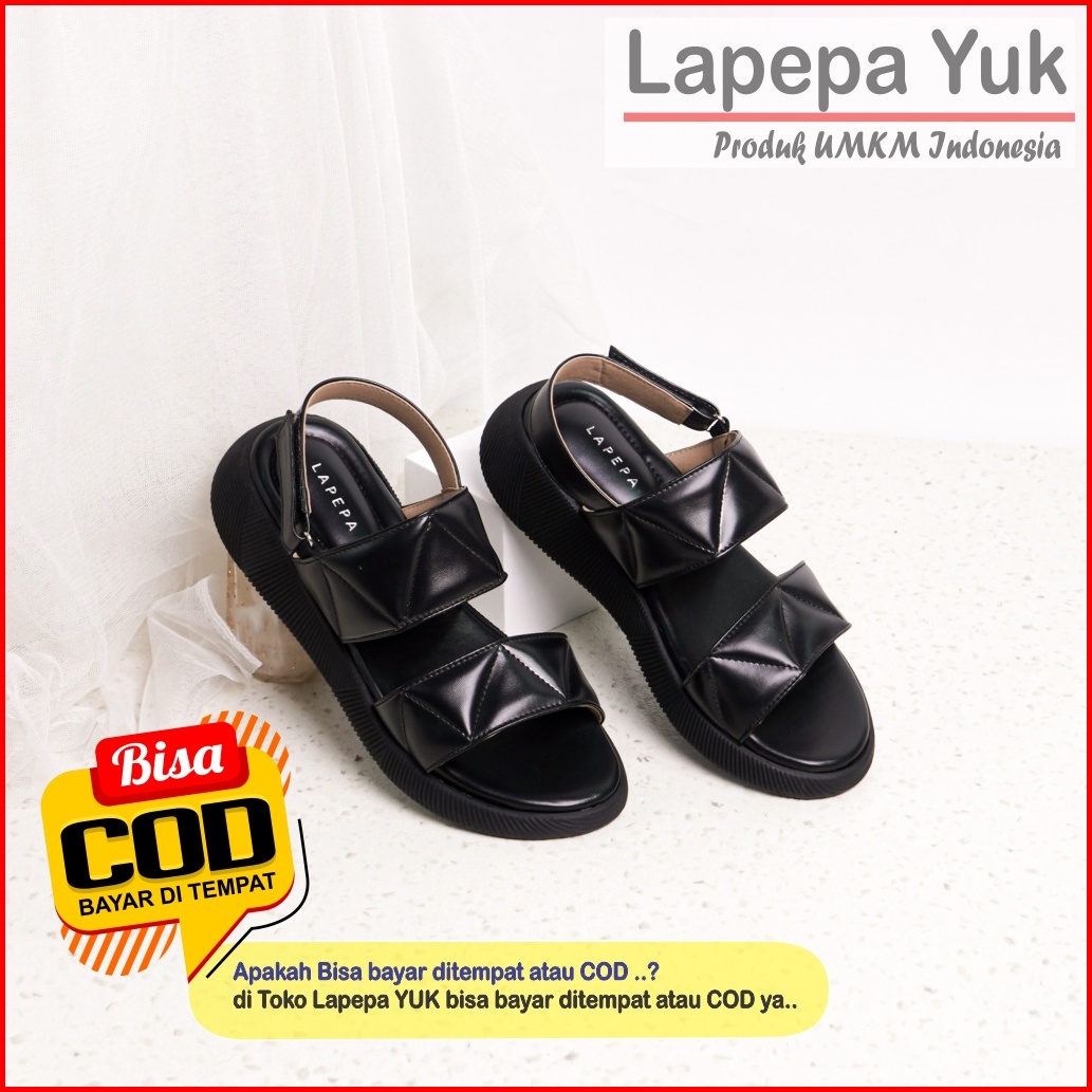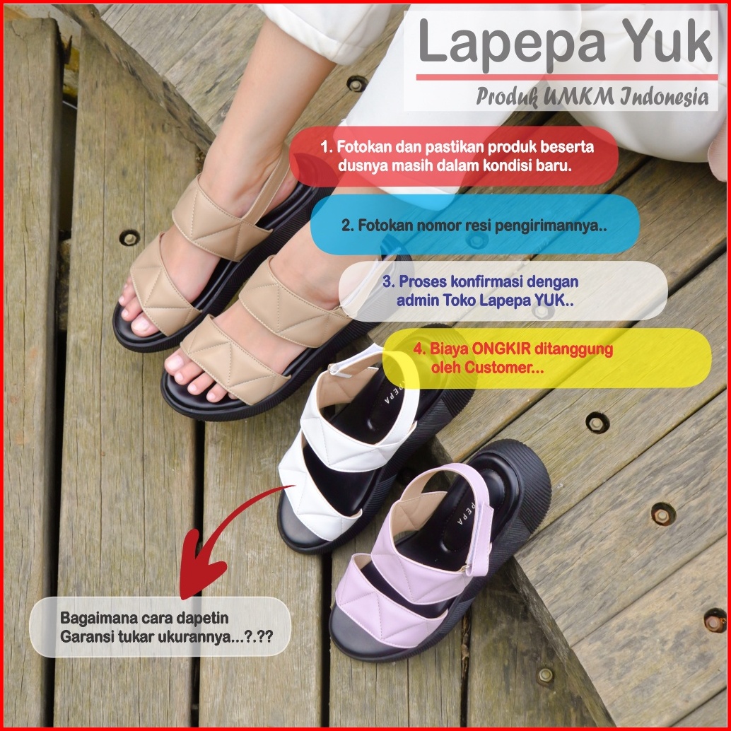 Lapepa Yuk - Sepatu Sandal Wanita Wedges Jovanka Model Ban Dua Tali Strap Belakang Hak Tinggi Sole 4 Cm Spatu Sendal