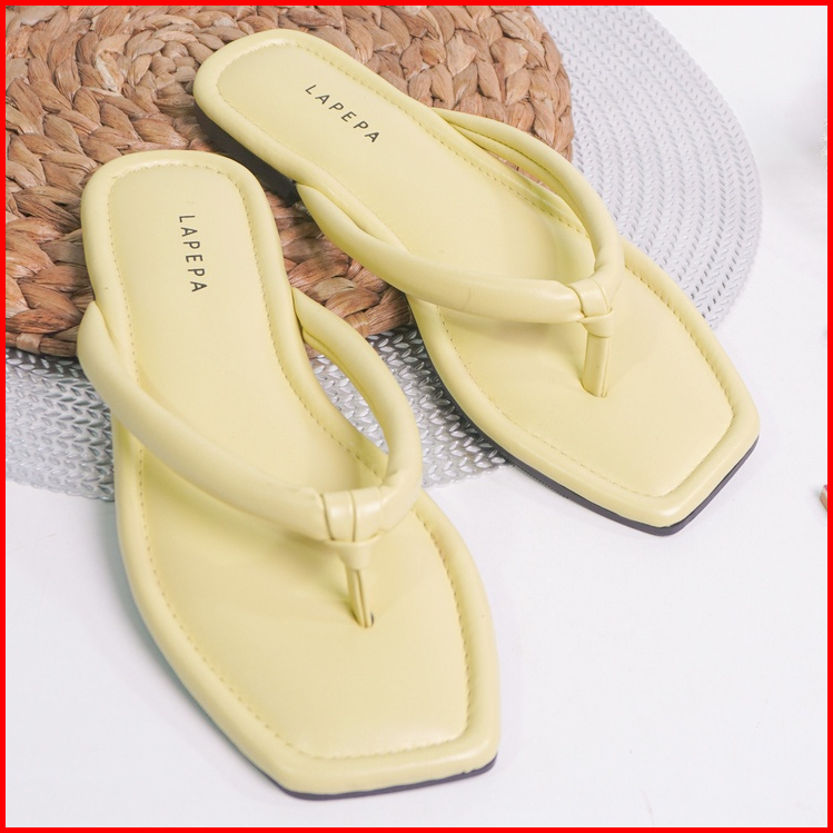 Lapepa Yuk - Livia Sandal Wanita Jepit Flat Size 36 - 40 Sendal Teplek Flat Cewek Pergi Jalan Rumahan Belleza Warna Yell