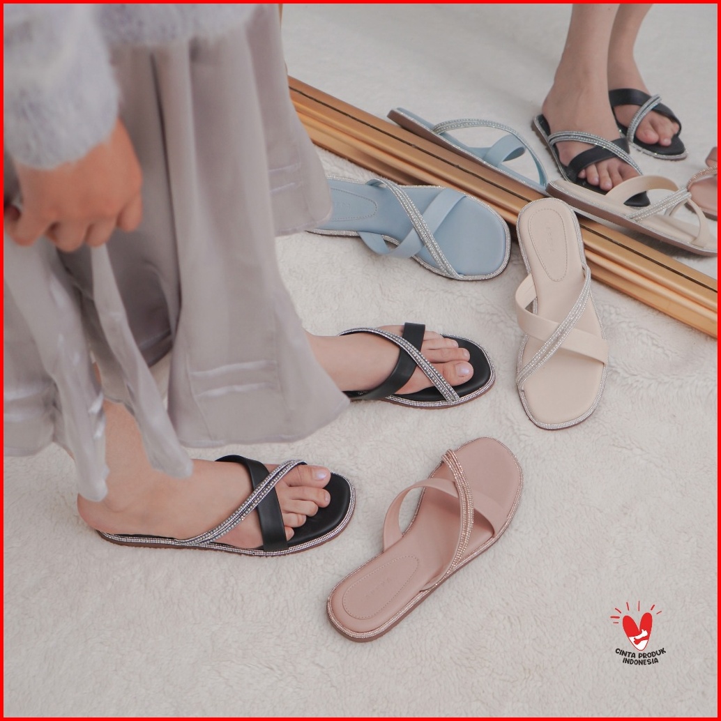 Lapepa Yuk - Ruby Sandal Wanita Teplek Korea Casual Size 36 - 40 Sendal Slop Empuk Flat Cewek Kasual Rumahan Warna Hitam