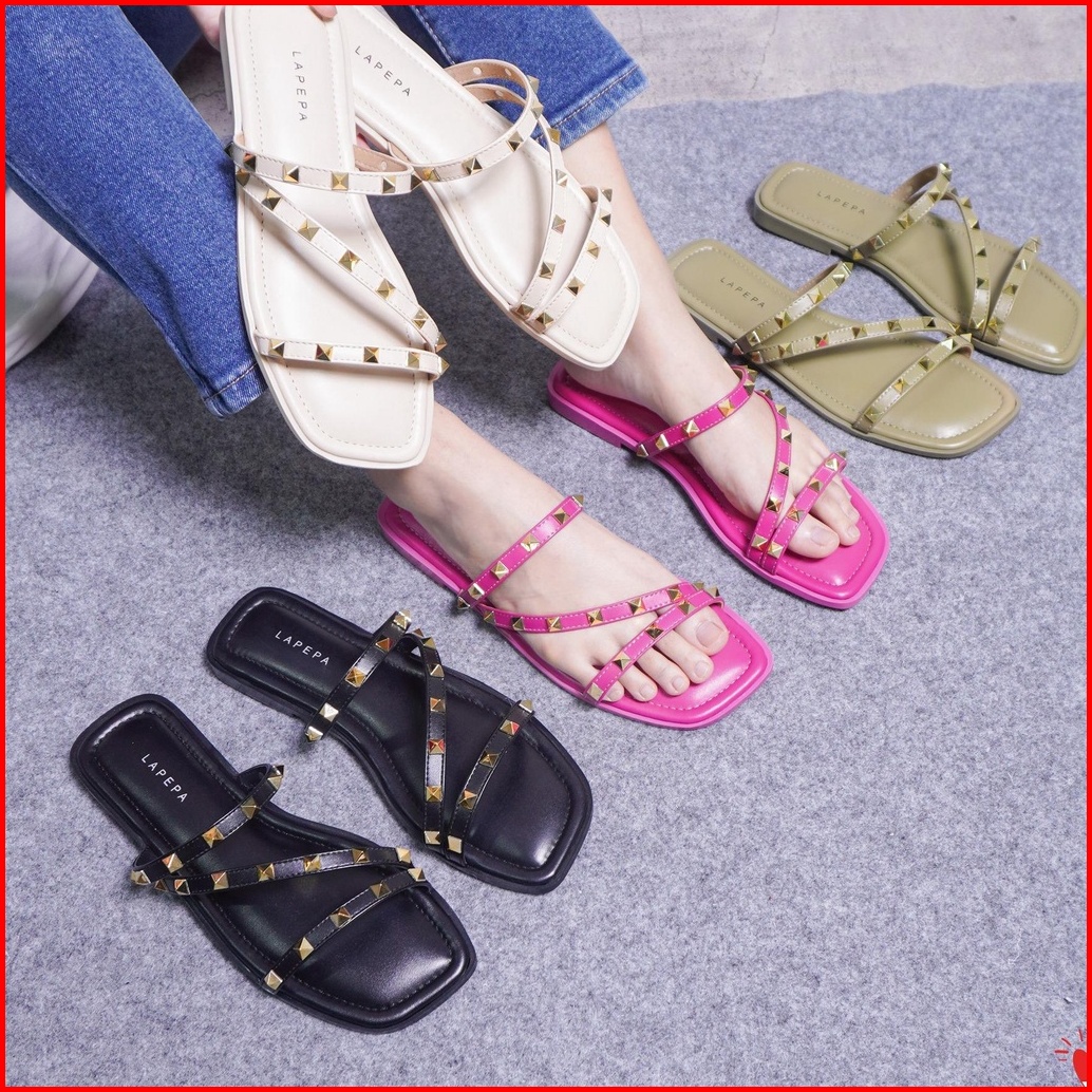 Lapepa Yuk - Ivy Sandal Wanita Teplek Casual Size 36 - 40 Model Duri Sendal Slop Rumah Empuk Flat Cewek Korea Kasual Rum