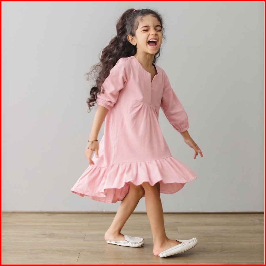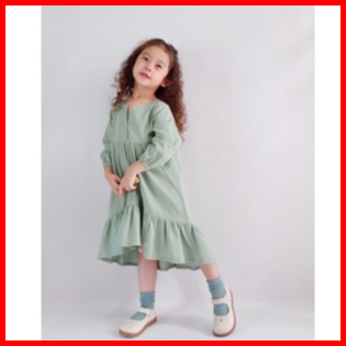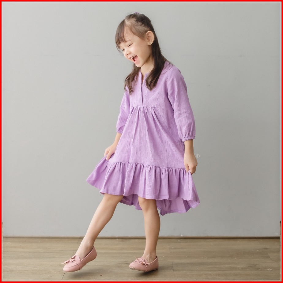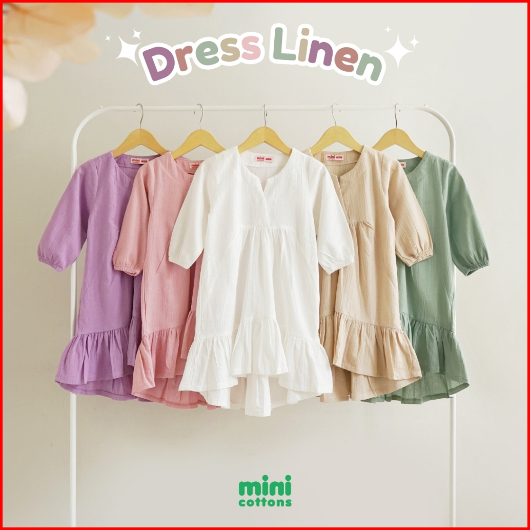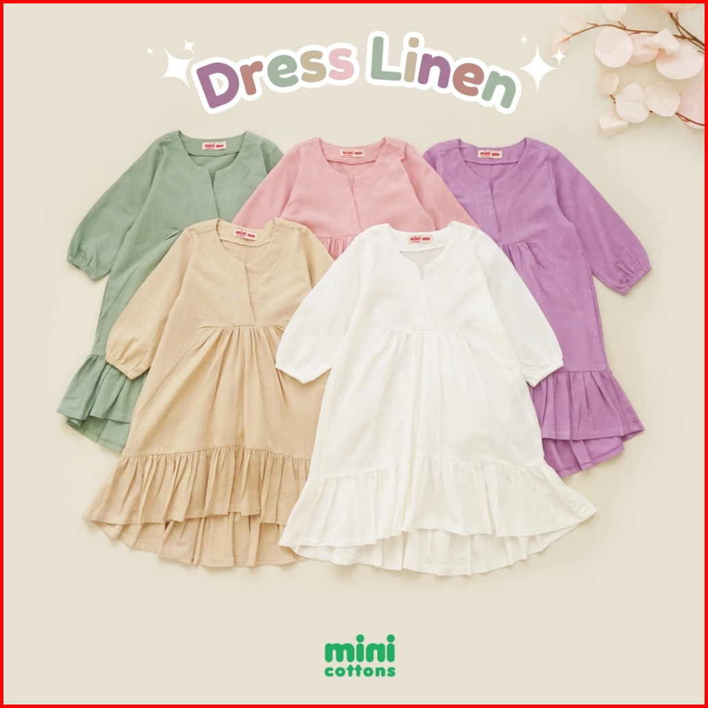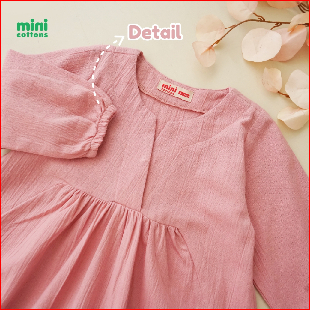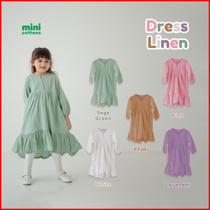Mini Cottons Dress Lebaran Linen Baju Anak Perempuan Lengan Panjang Gamis Tunik