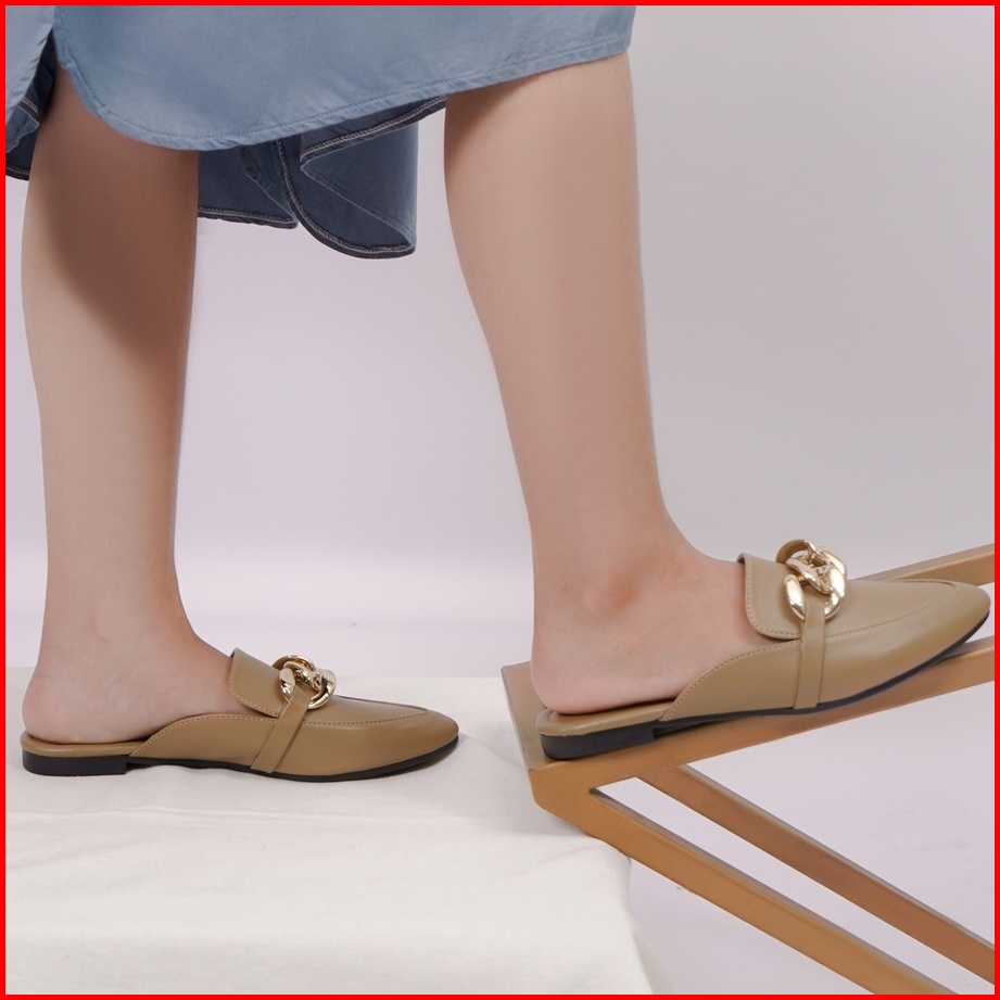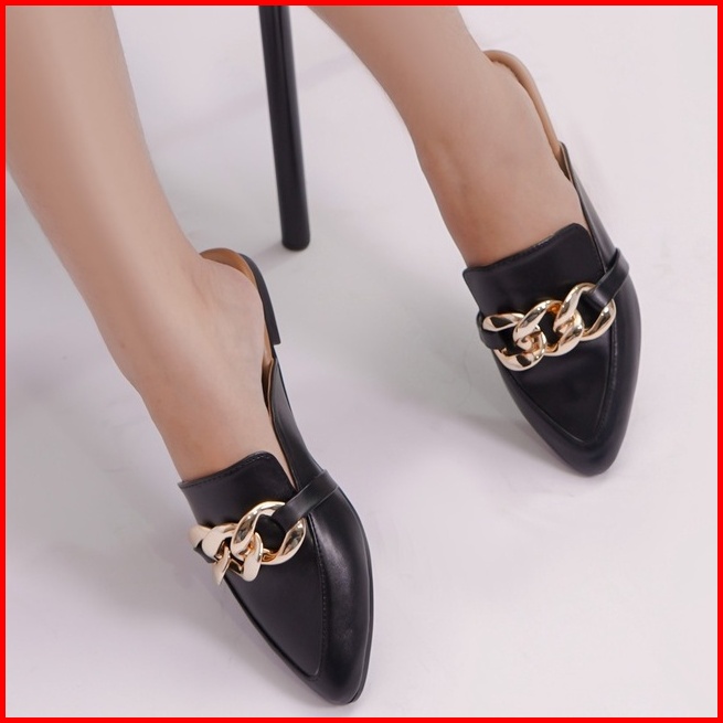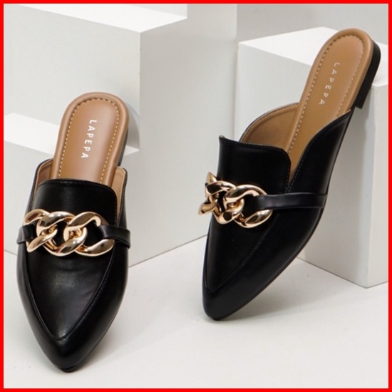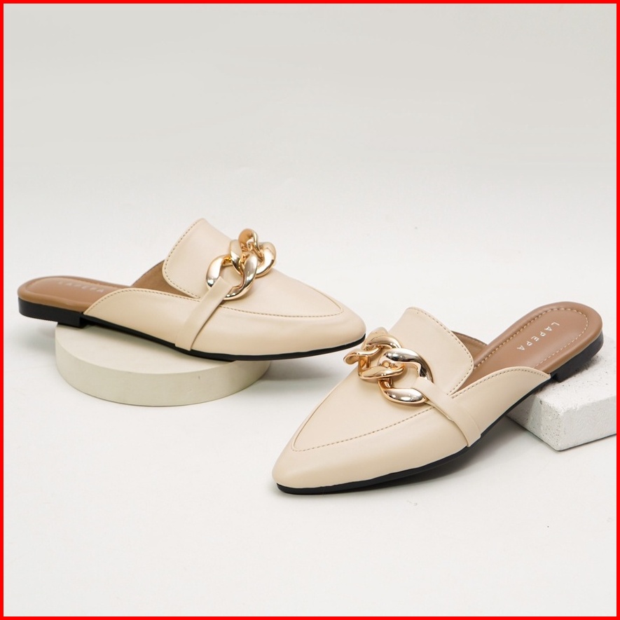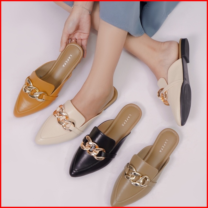 Lapepa Yuk - Amora Sepatu Sandal Wanita Slip On Mules Size 36 - 40 Casual Sendal Slop Teplek Flat Ujung Lancip Tertutup