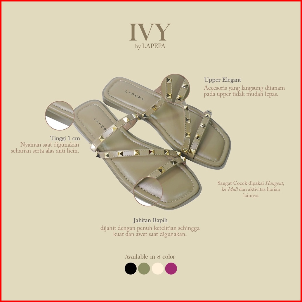 Lapepa Yuk - Ivy Sandal Wanita Teplek Casual Size 36 - 40 Model Duri Sendal Slop Empuk Flat Cewek Korea Kasual Rumahan W