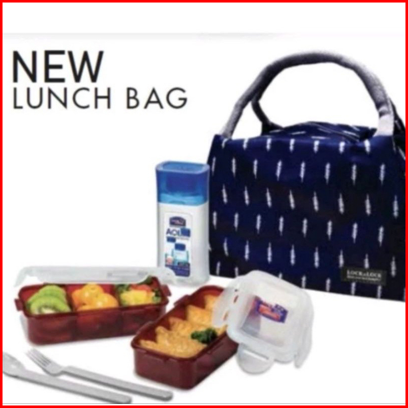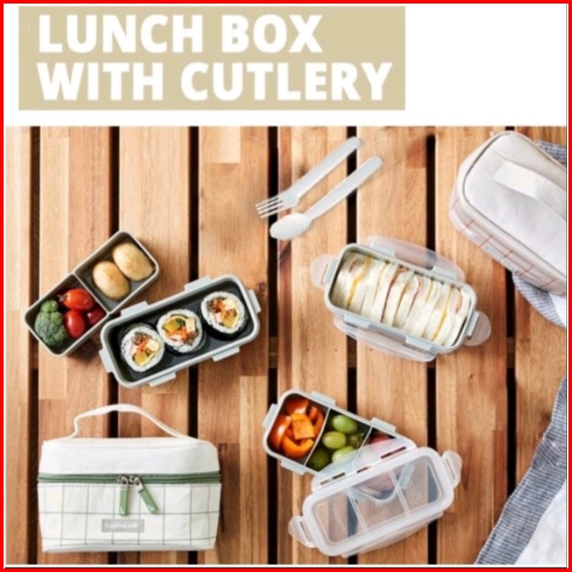 Lock Lock Lcb752w Lunch Box Set Tempat Makan 2 Pcs Clover Bag Spoon Fork Set