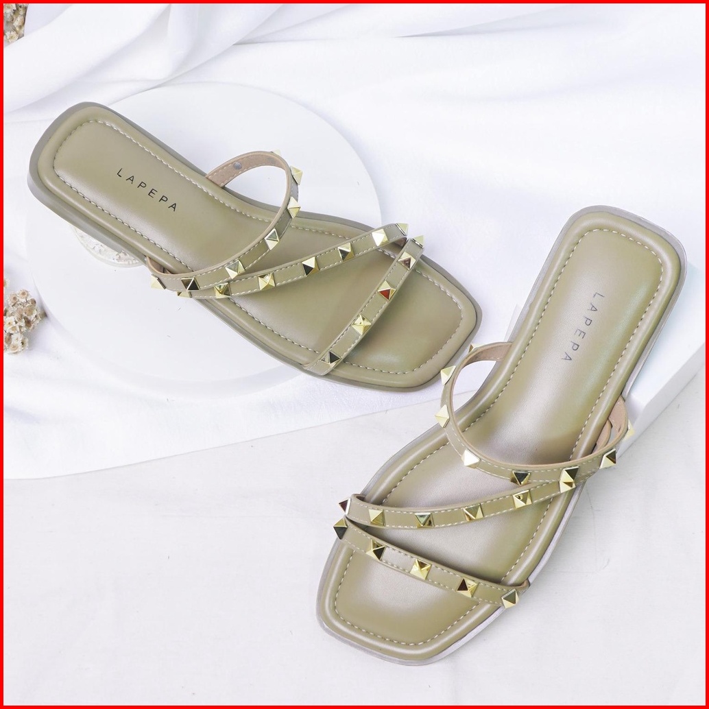 Lapepa Yuk - Ivy Sandal Wanita Teplek Casual Size 36 - 40 Model Duri Sendal Slop Rumah Empuk Flat Cewek Korea Kasual Rum