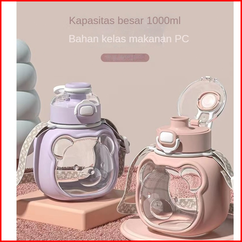Bz-148 Botol Minum 1 Liter Yang Indah Anak Dengan Sedotan Tali 1000ml