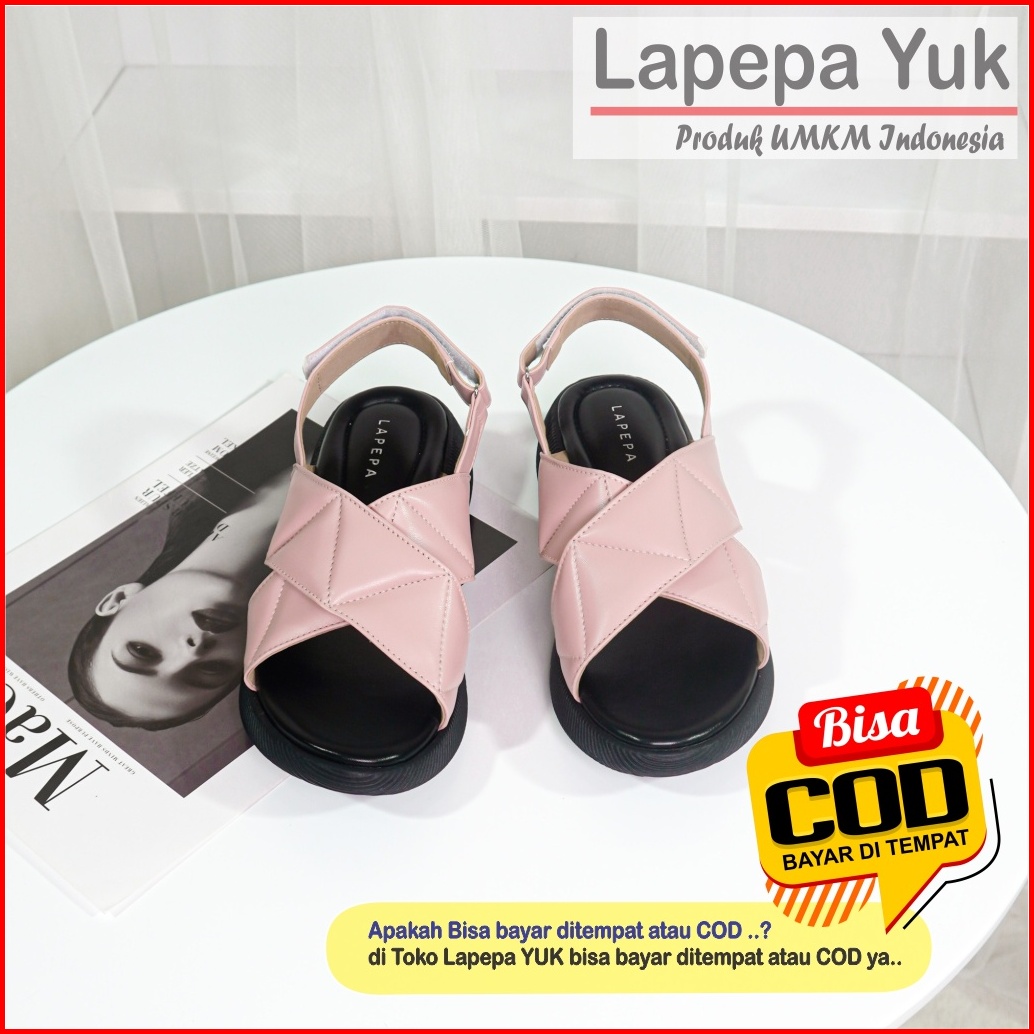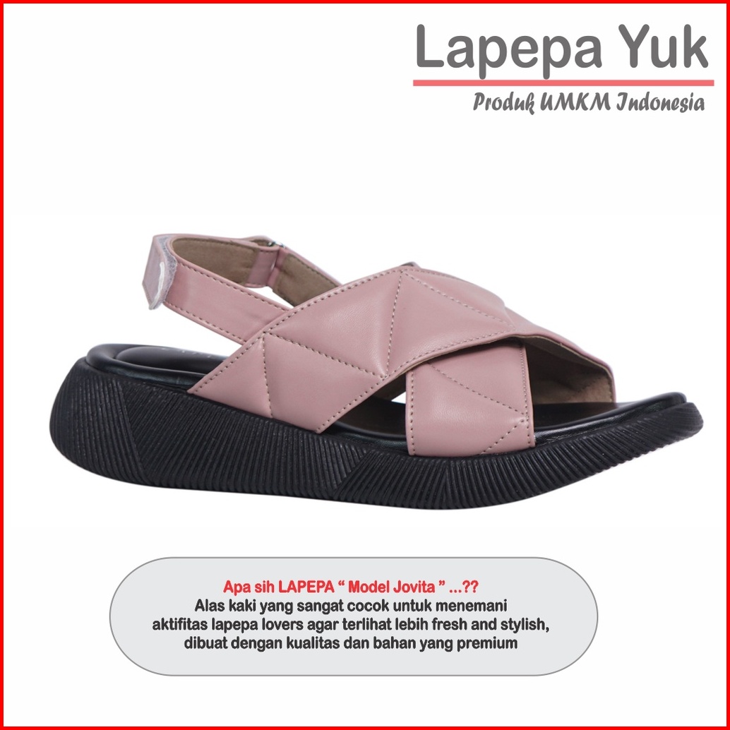 Lapepa Yuk - Sepatu Sandal Wanita Wedges Jovita Model Ban Dua Tali Strap Belakang Hak Tinggi Sole 4 Cm Spatu Sendal Gunu