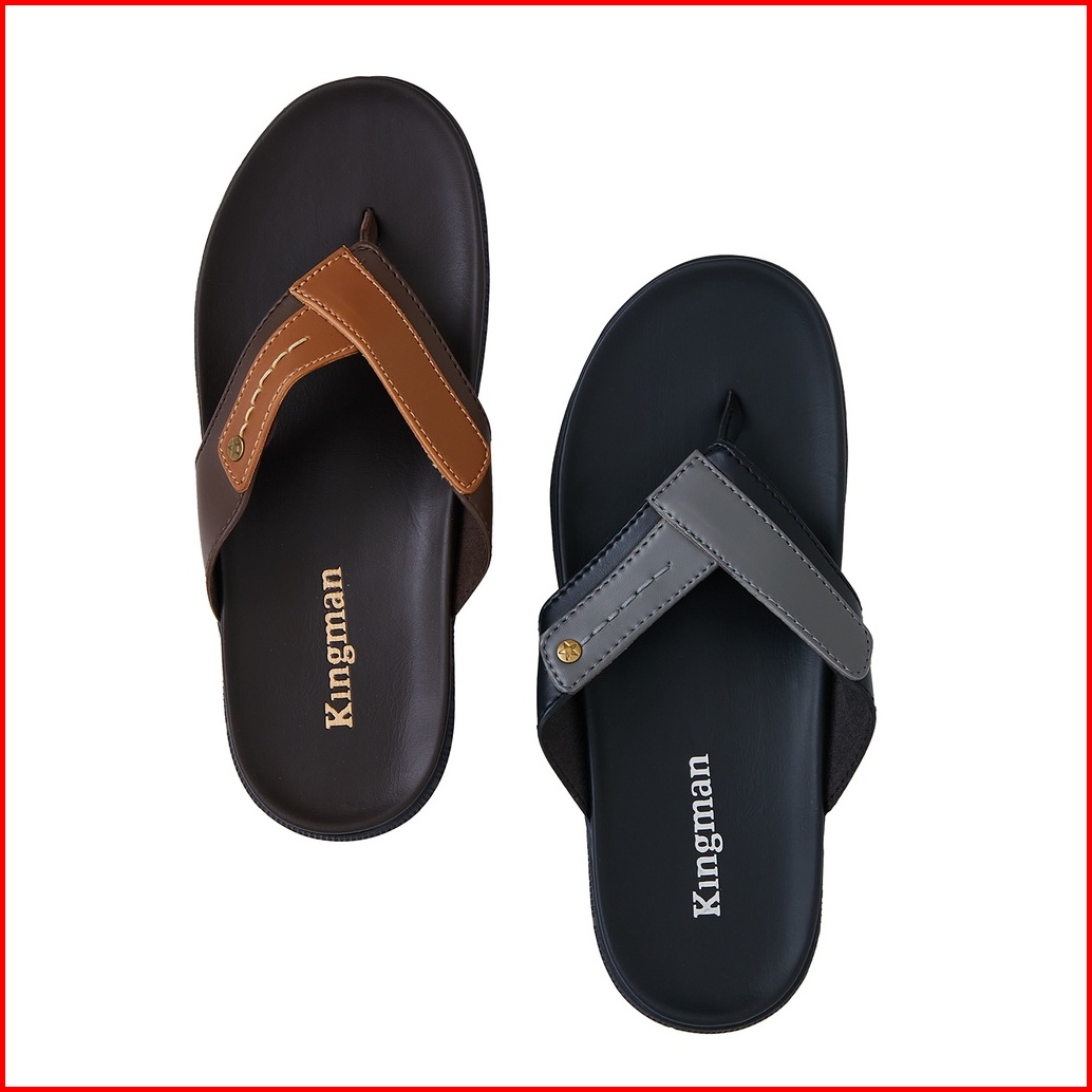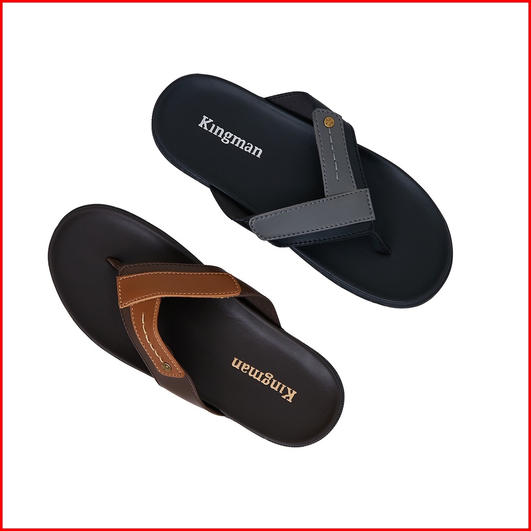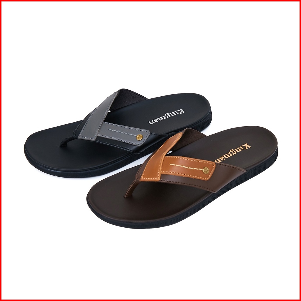 Kgmn Sandal Pria Casual Kekinian Tampa Sendal Jepit Hangout Cowok Stylish Kulit Kualitas Import - Ta100
