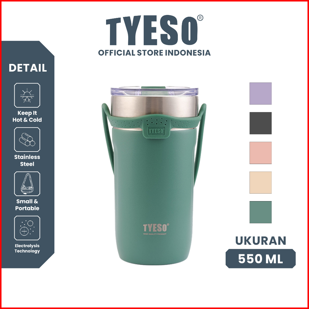Tyeso Tumbler Botol Minum Sedotan 550ml Ts-8766 Thermos Cup Vacuum Insulated Stainless Steel