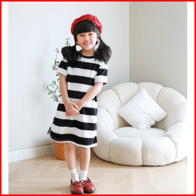 Clearance Sale Mini Cottons Stripe Dress Garis Salur Baju Anak Perempuan
