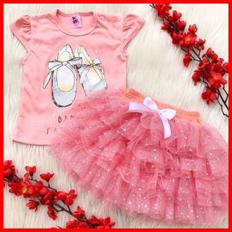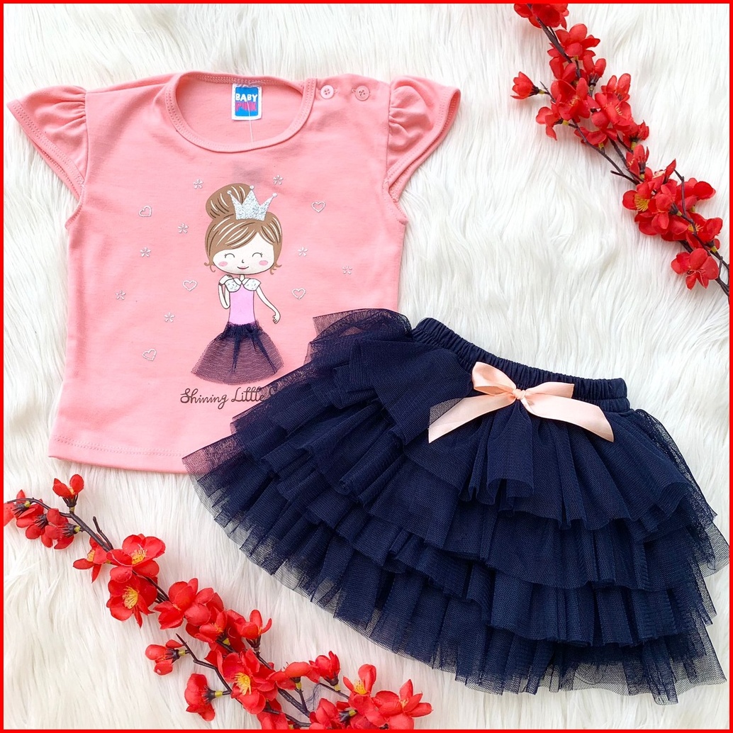Baju Setelan Kaos Rok Lucu Gambar Murah Bayi Anak Cewek Perempuan Ootd Pergi Jalan -von Sho