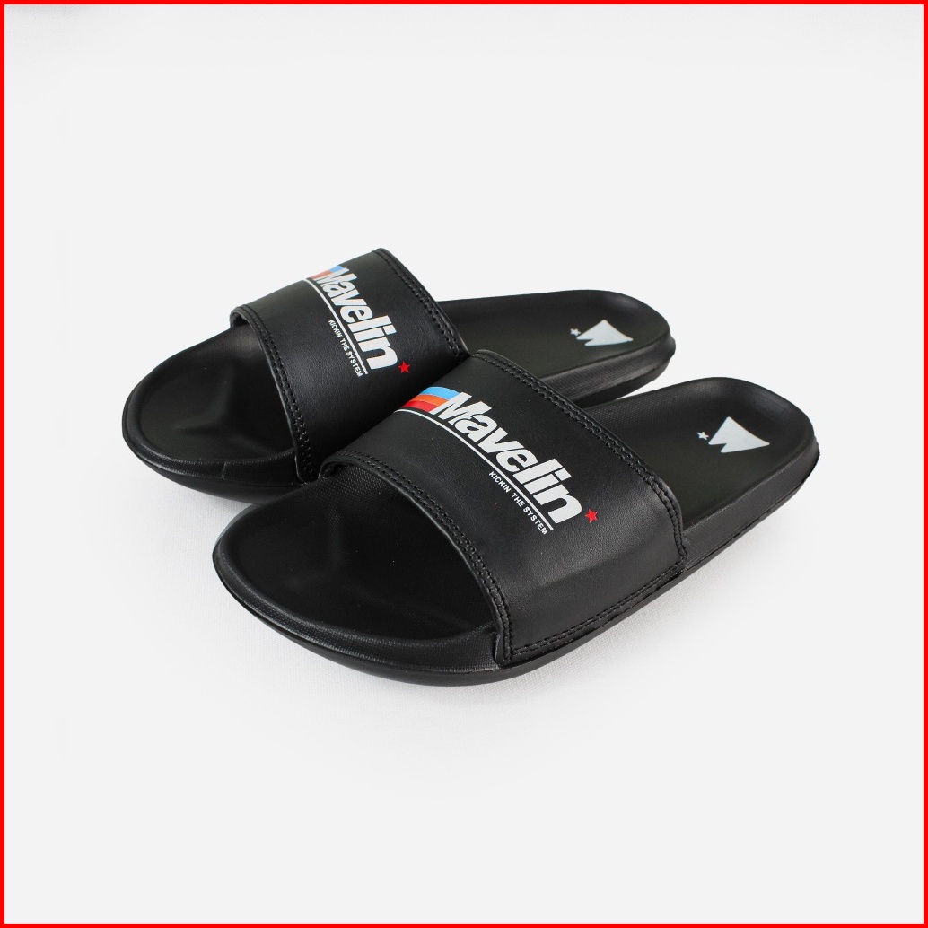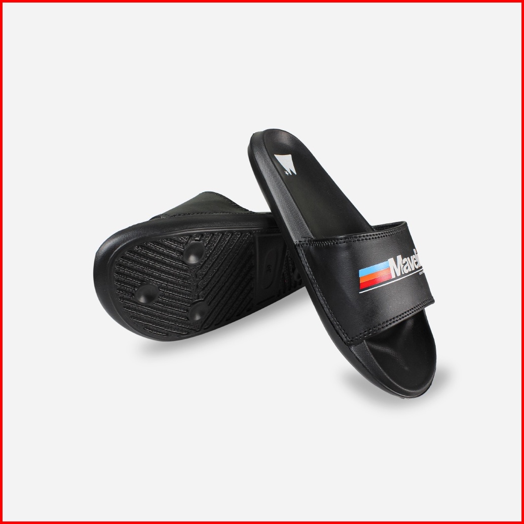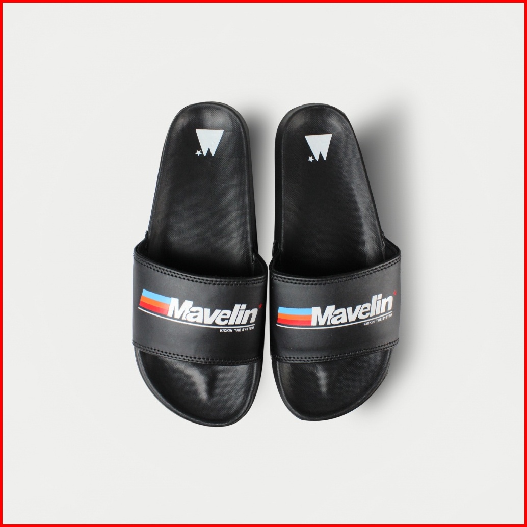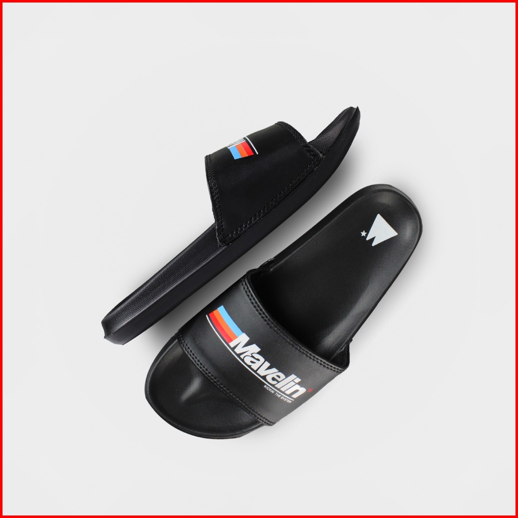 Mavelin - Logo Rainbow Black Slippers Slide Sandal Pria Sandal Wanita Sandal Unisex