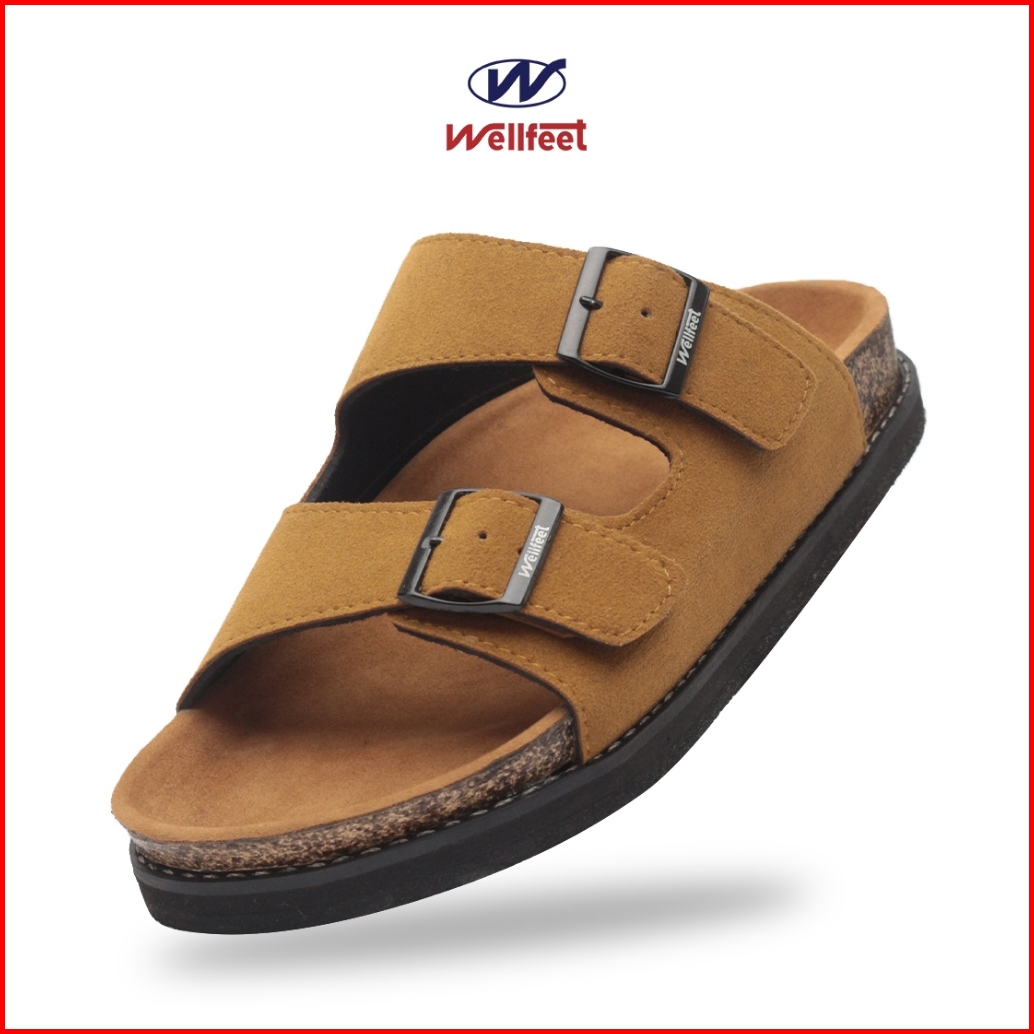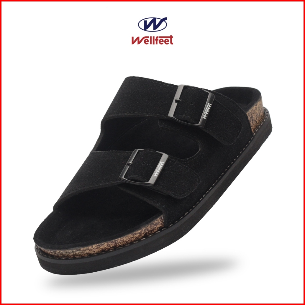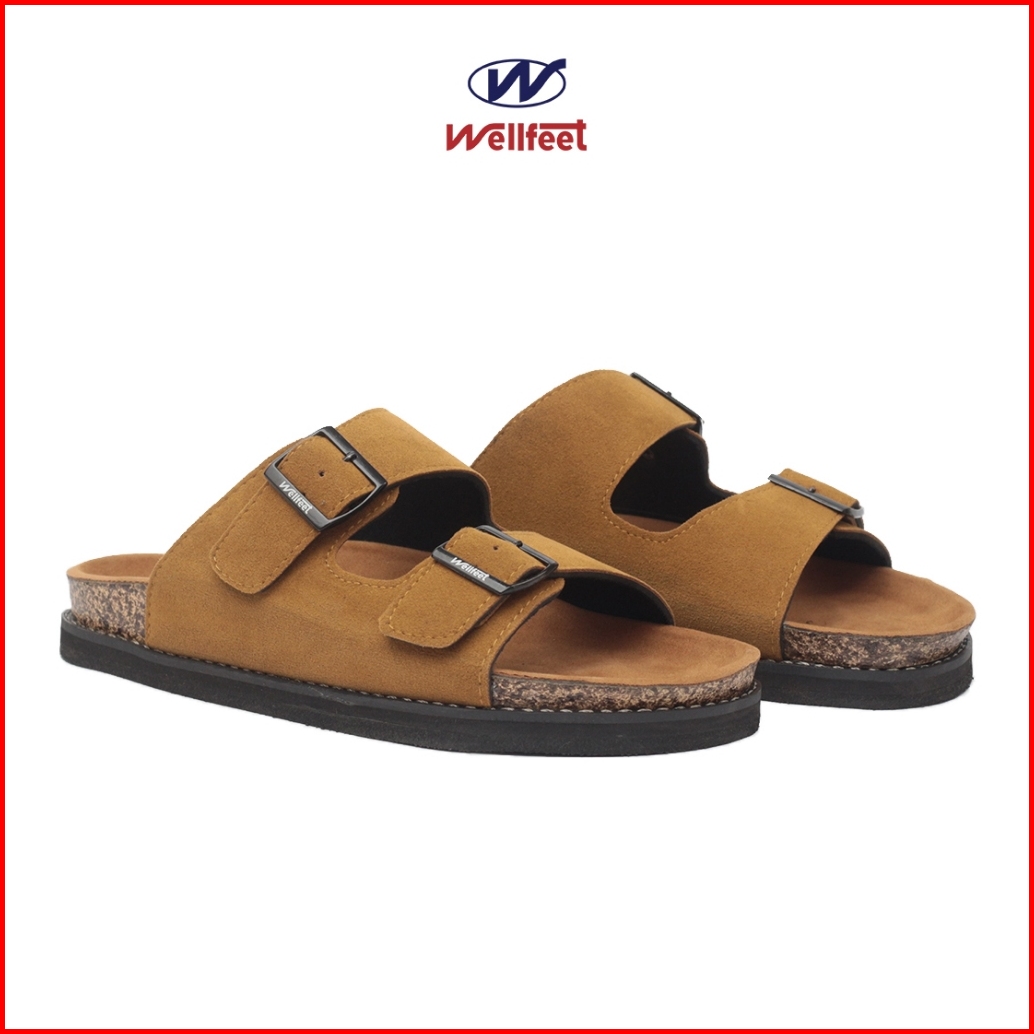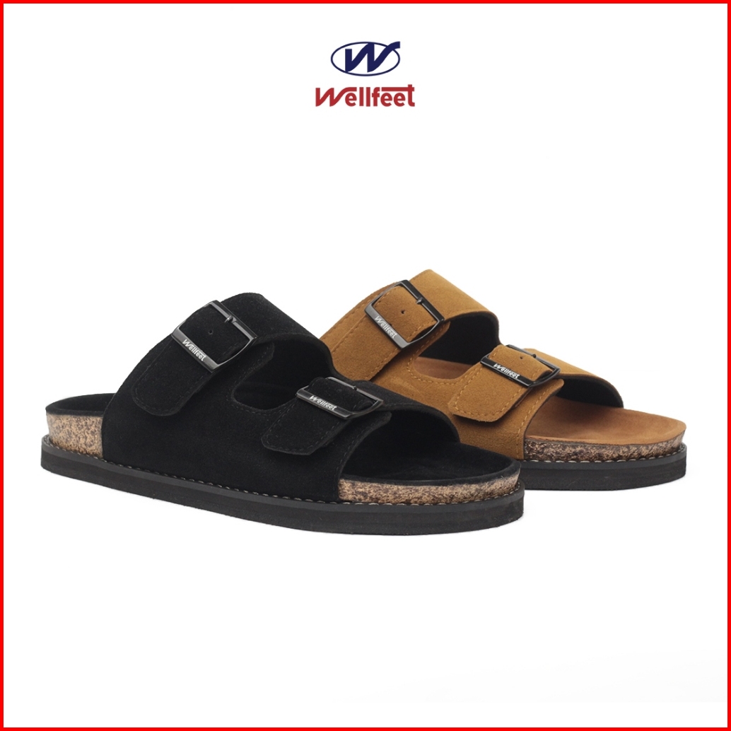 Wellfeet.ltd Sandal Slide Pria Slop Casual Santai Kulit City Flex-black Tan