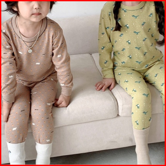 Junecollections Baju Tidur Anak Setelan Piyama Bayi Set Lengan Panjang Bahan Lembut Piyama Anak Motif Bear Beruang Dino
