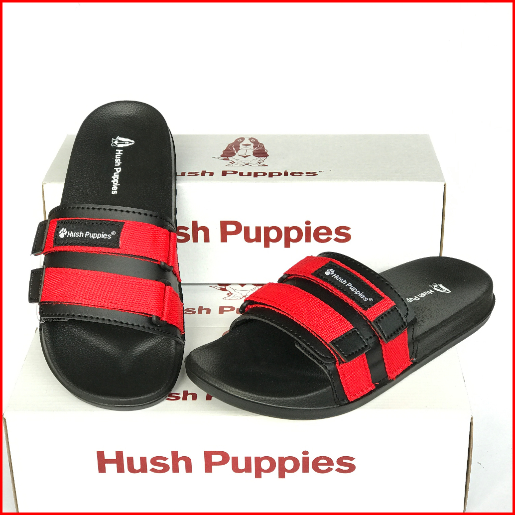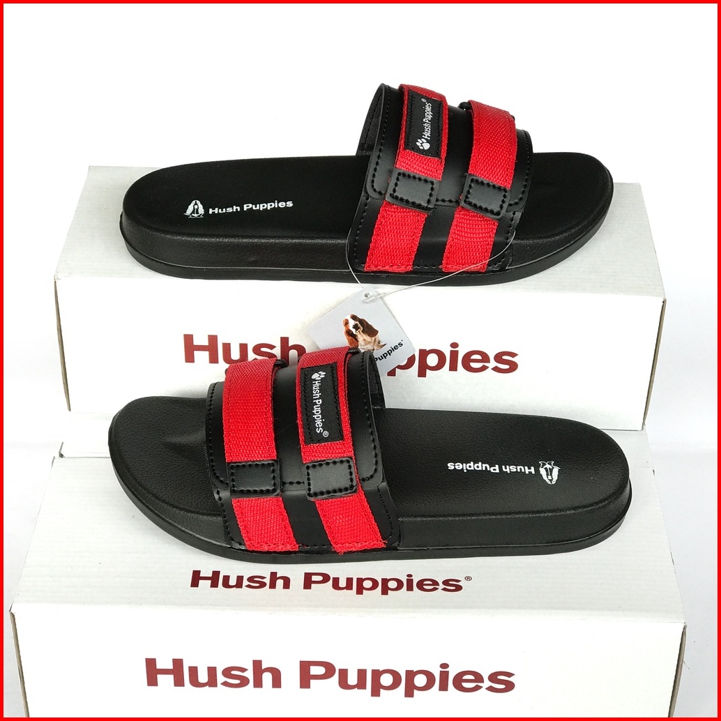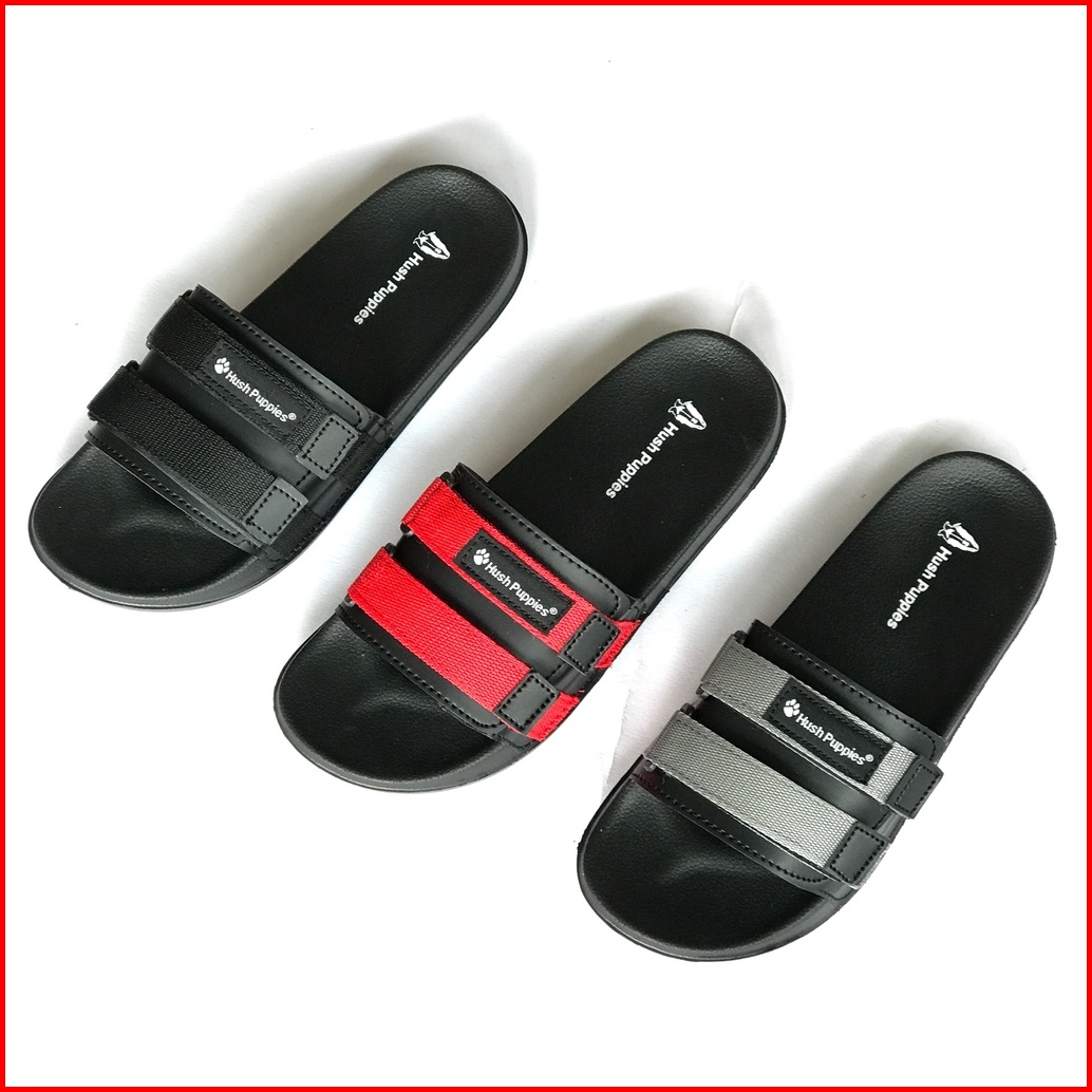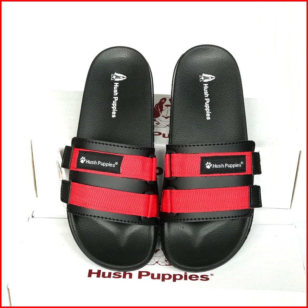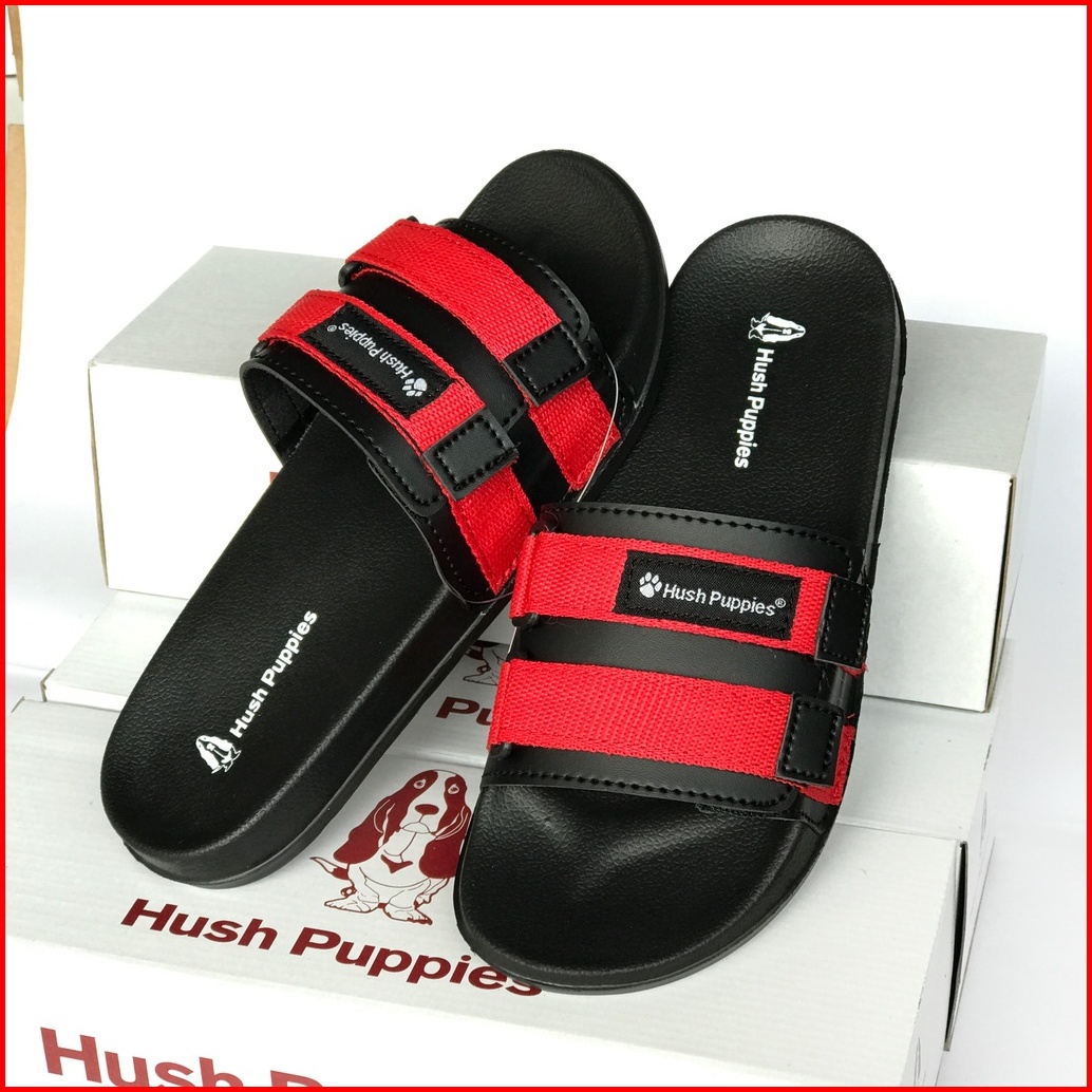 Sandal Slide Hush Puppies Pria Wanita Double Strap Webbing Black Original Premium