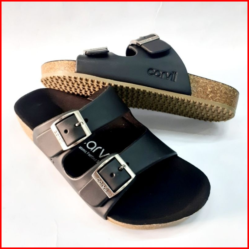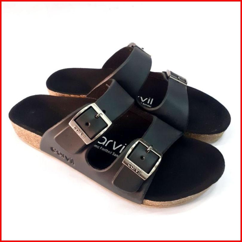 Sandal Carvil Selop Pria Dewasa Kekinian Sendal Benzo 02 Hitam Cokelat Size 38 Sd 44 Premium Berkualitas