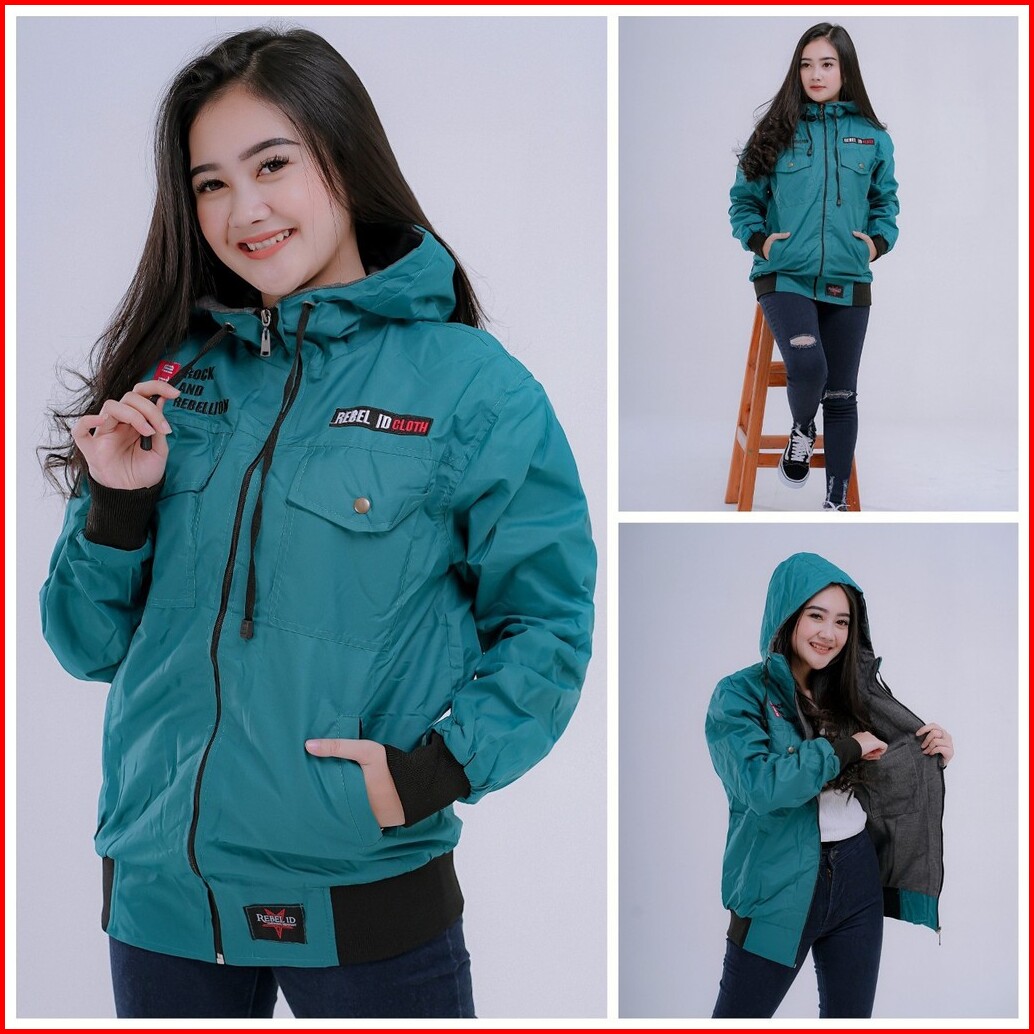 Jaket Motor Wanita Terbaru Kekinian Parasut Anti Air Jacket Cewek Keren Waterproof Rebel Indo Navy Hoodie Hody Hodie Hud