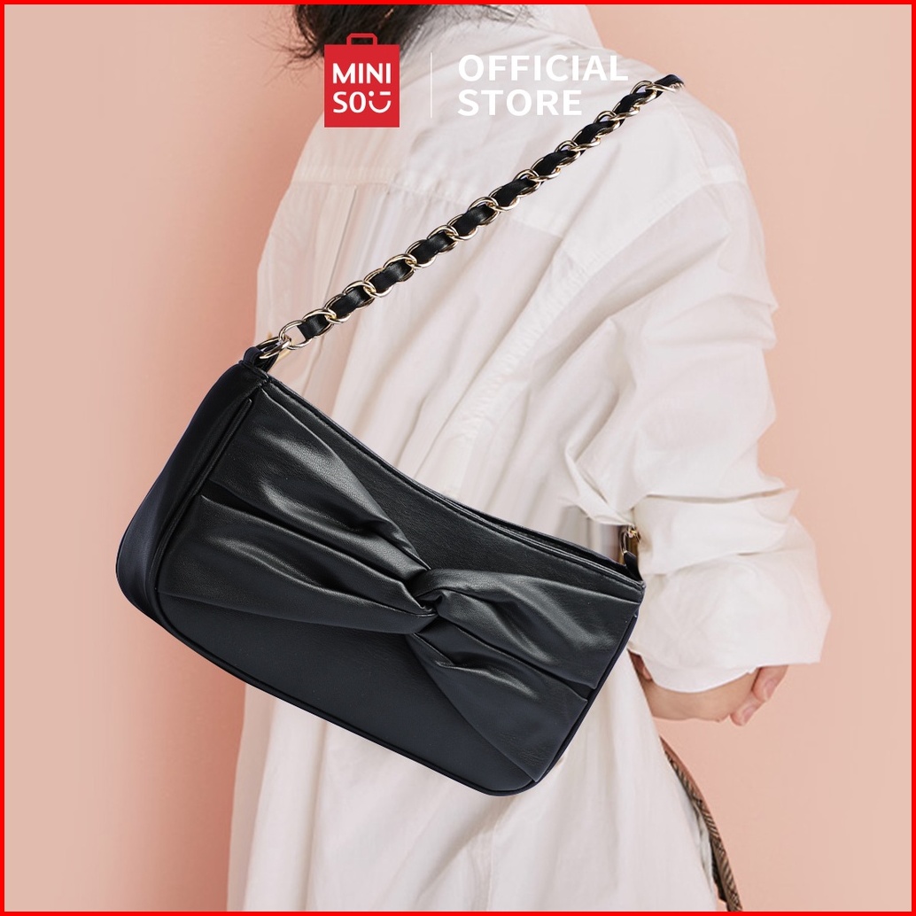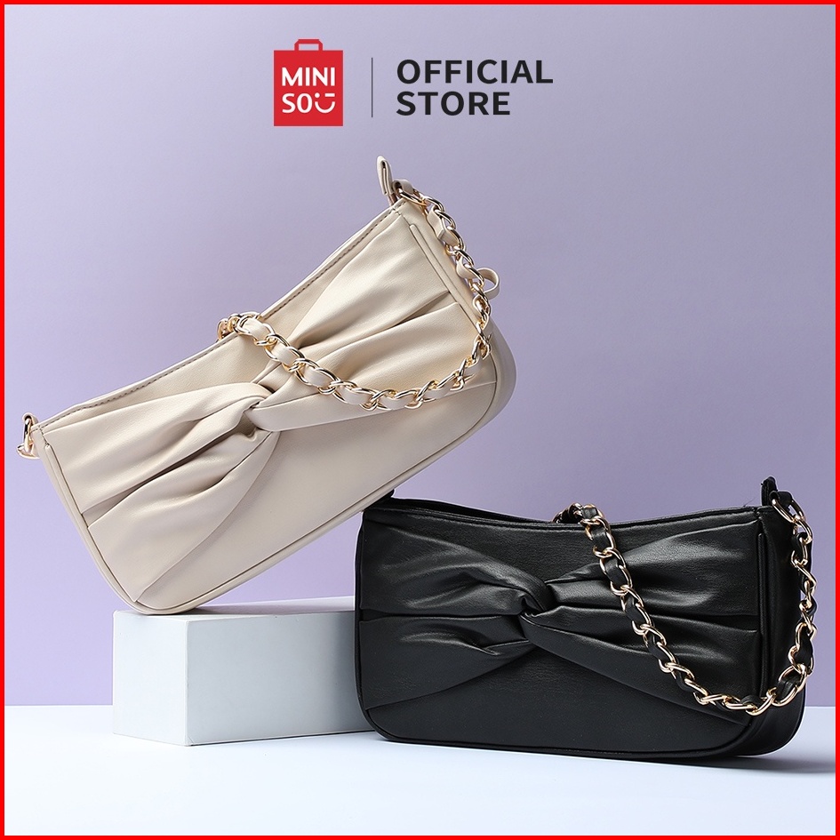 Miniso Tas Bahu Tas Selempang Tas Pesta Tas Pundak Rantai Elegan Shoulder Bag Kulit Pvc Tahan Air Desain Sederhana Elega
