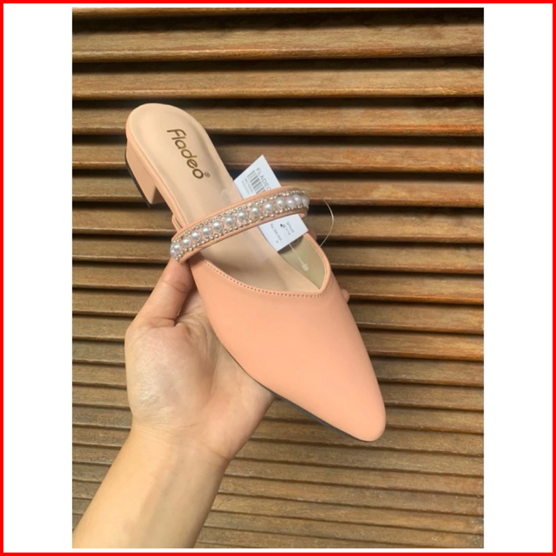 Sandal Wanita Mules Heels 3 Cm Mutiara Kode 04