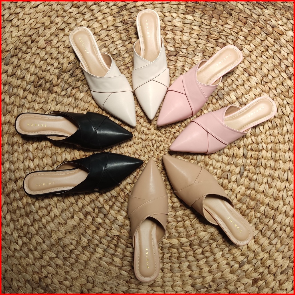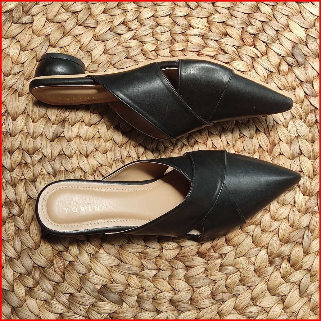 Sandal Mules Wanita Hak Bulat 4cm Slop Original Simple Elegant