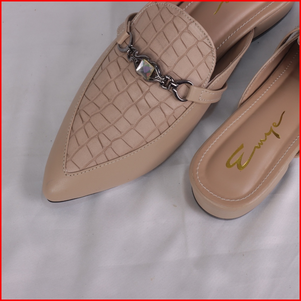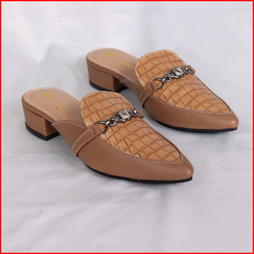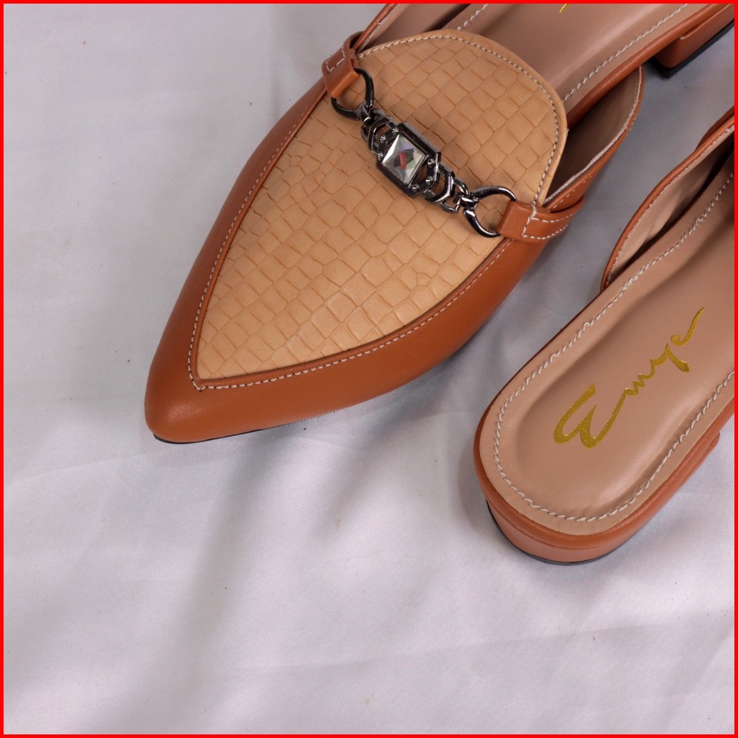 Emye - Sepatu Sandal Pantofel Mules Wanita Hitam Cream Moca 3 Cm