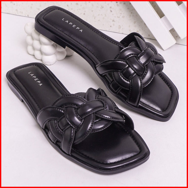 Lapepa Yuk - Anna Sandal Wanita Teplek Korea Casual Size 36 - 40 Sendal Slop Empuk Flat Cewek Kasual Rumahan Warna Hitam