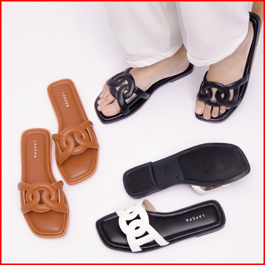 Lapepa Yuk - Sora Sandal Wanita Teplek Korea Casual Size 36 - 40 Sendal Slop Empuk Flat Cewek Kasual Rumahan Warna Hitam