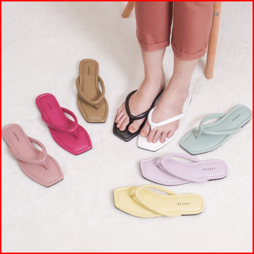 Lapepa Yuk - Livia Sandal Wanita Jepit Flat Size 36 - 40 Sendal Teplek Flat Cewek Pergi Jalan Rumahan Belleza Warna Hita