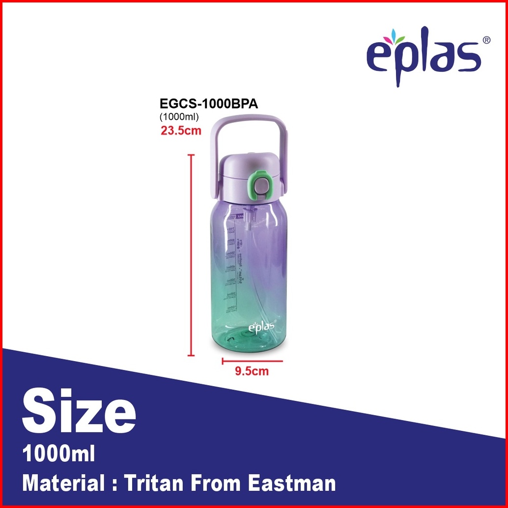 Eplas Modern Botol Minum Tritan One Touch Multicolour Dengan Sedotan Pegangan Bpa Free 1000ml Egcs-1000