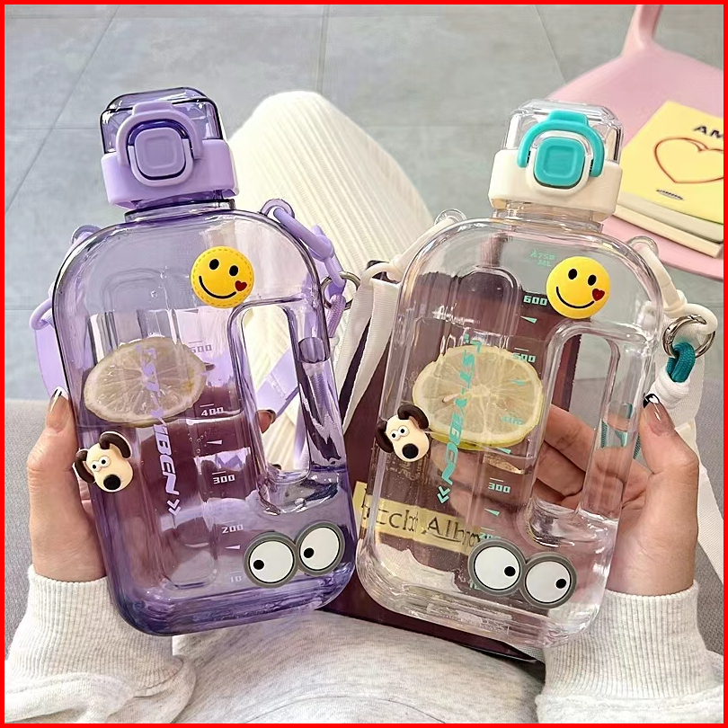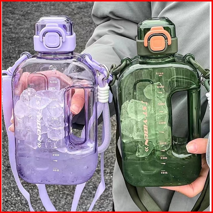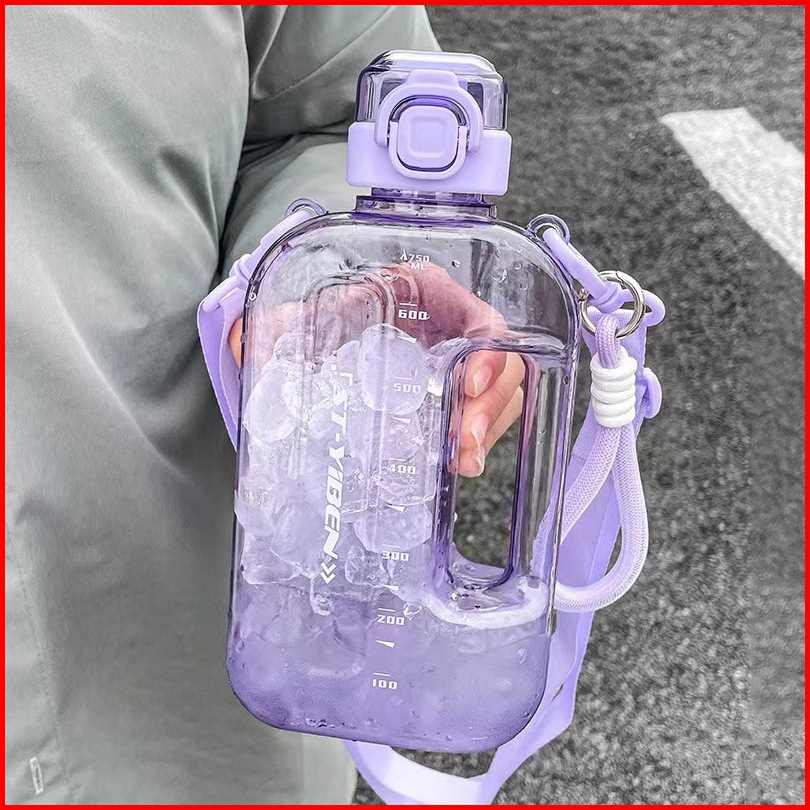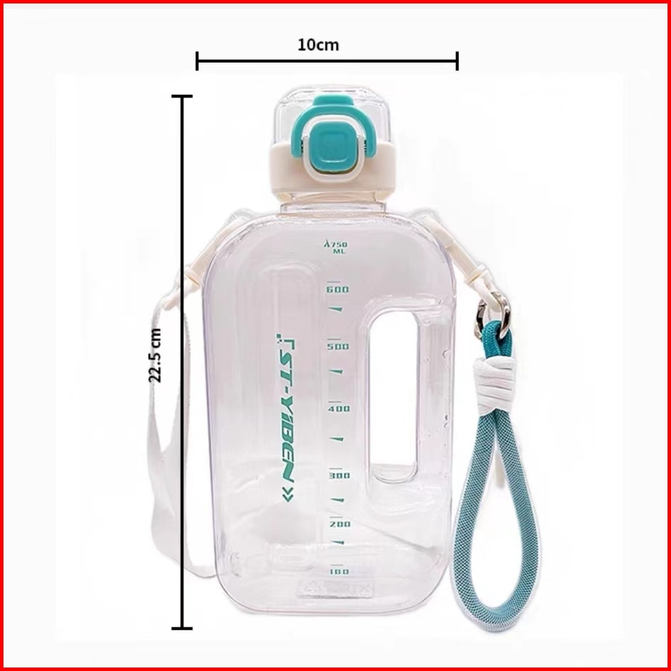 Bz-145 Botol Minum Aesthetic Portable Sport 750ml Dapat Tali Bentuk Persegi