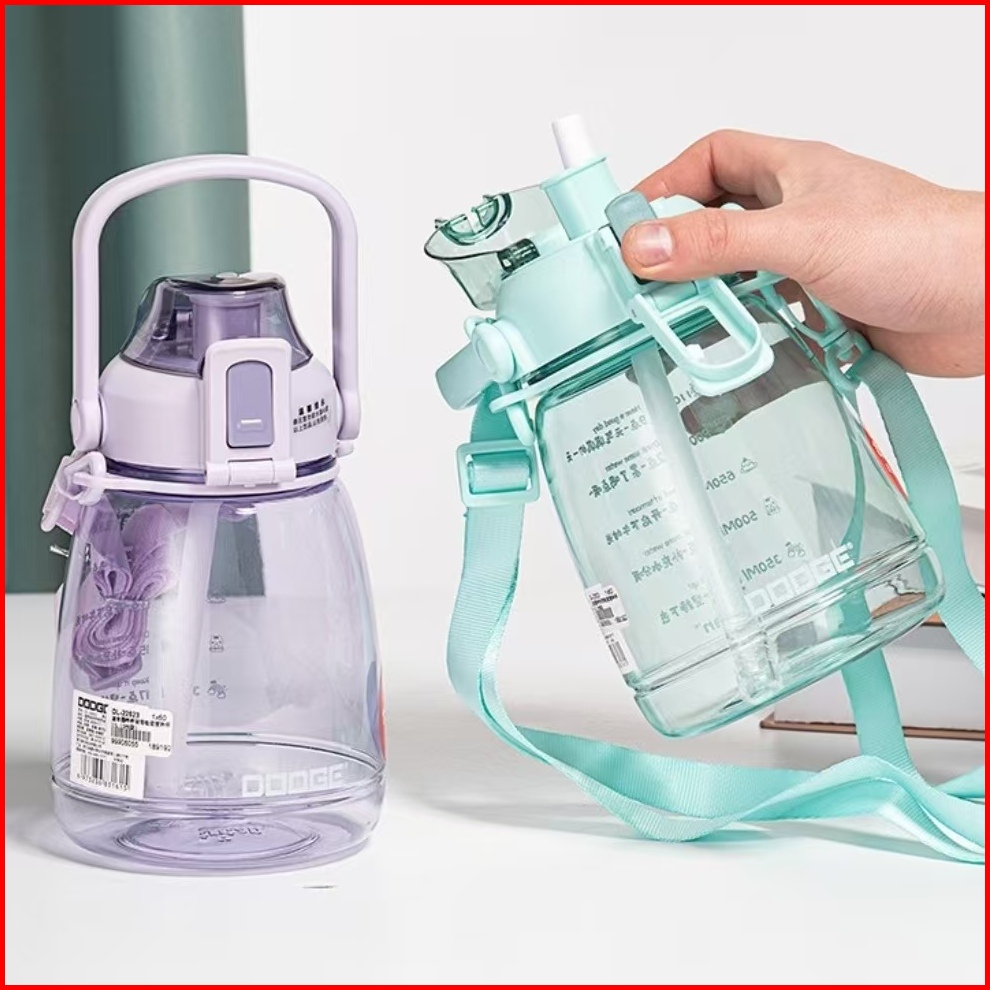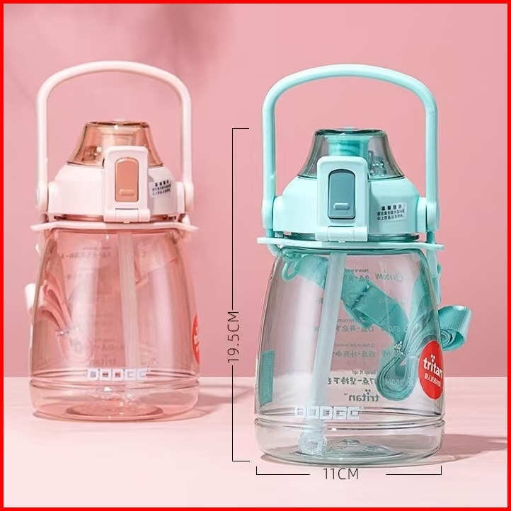 Bz-127 Dodge Botol Minum 1liter Olahraga Jombo Tritan Sedotan Anak 1000 Ml Motivasi Viral Bpa Free