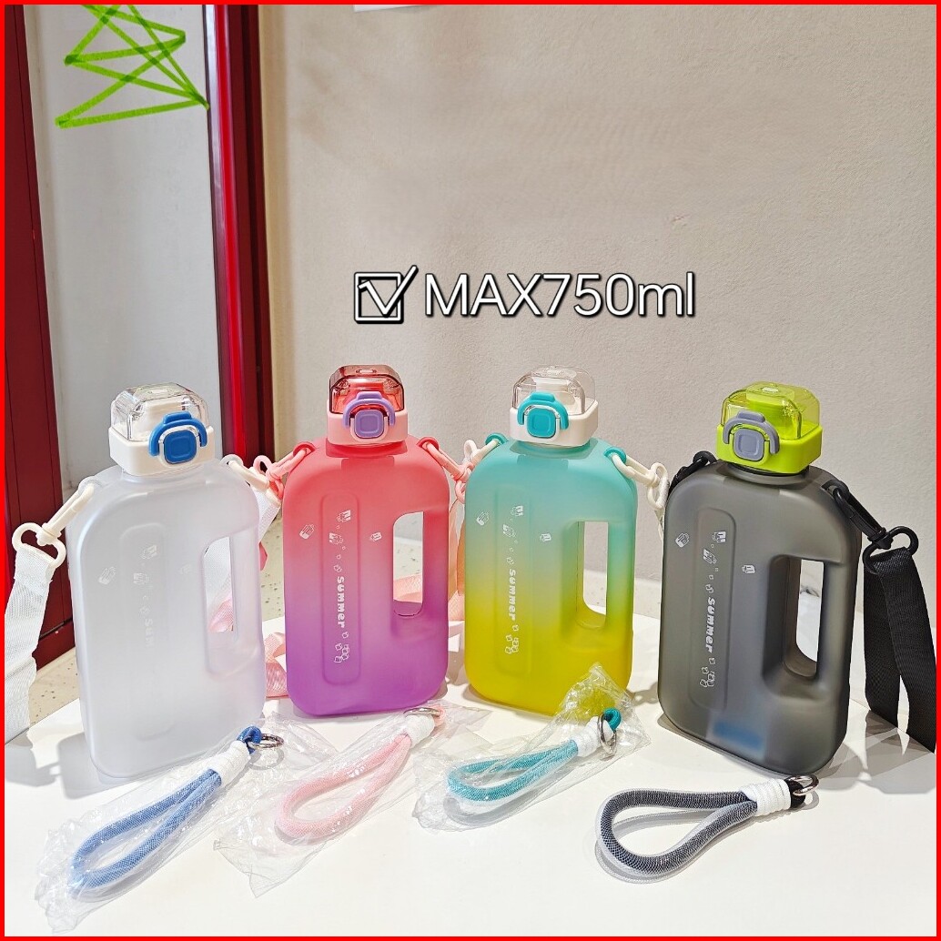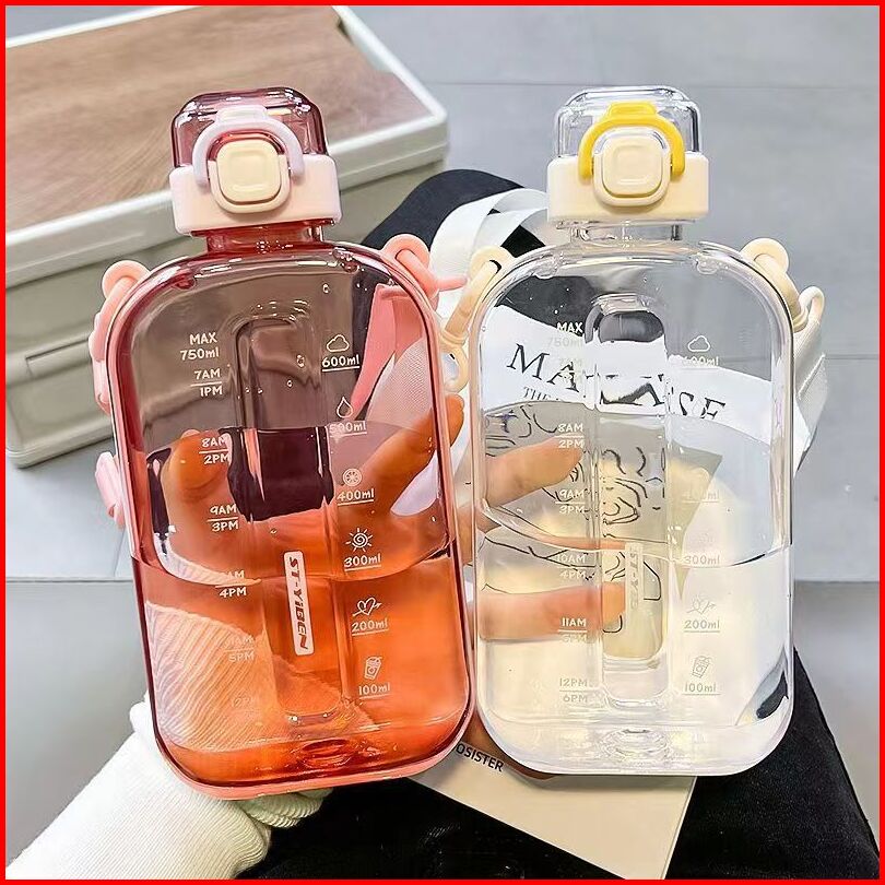 Botol Minum Portable Persegi Transparan Bentuk Kotak Outdoor 750ml Water Bottle