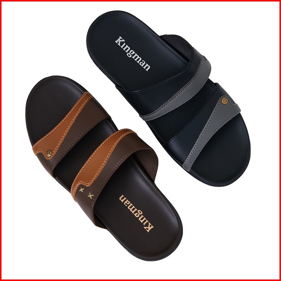 Kgmn Sandal Pria Dallas Stylish Terbaru Sendal Cowok Kulit Premium Kekinian Kualitas Import - Da200